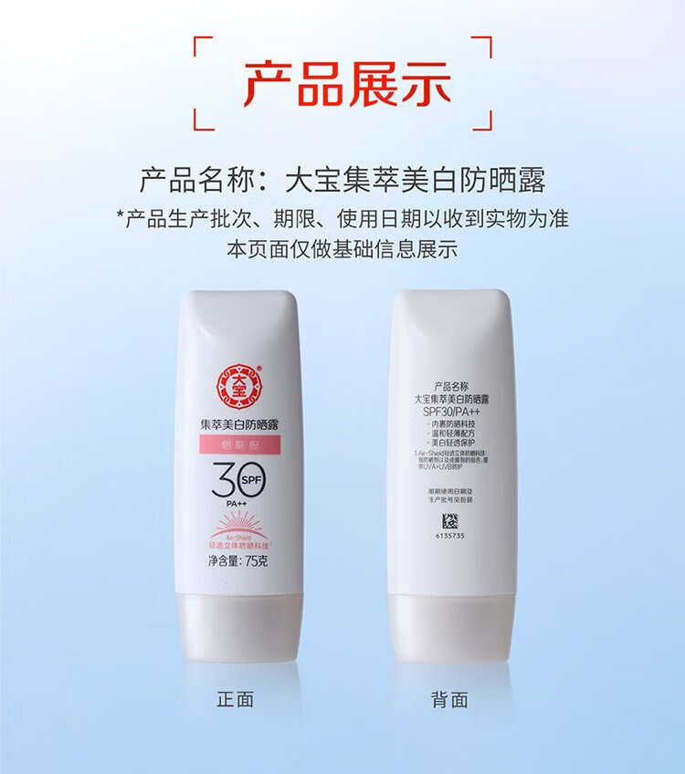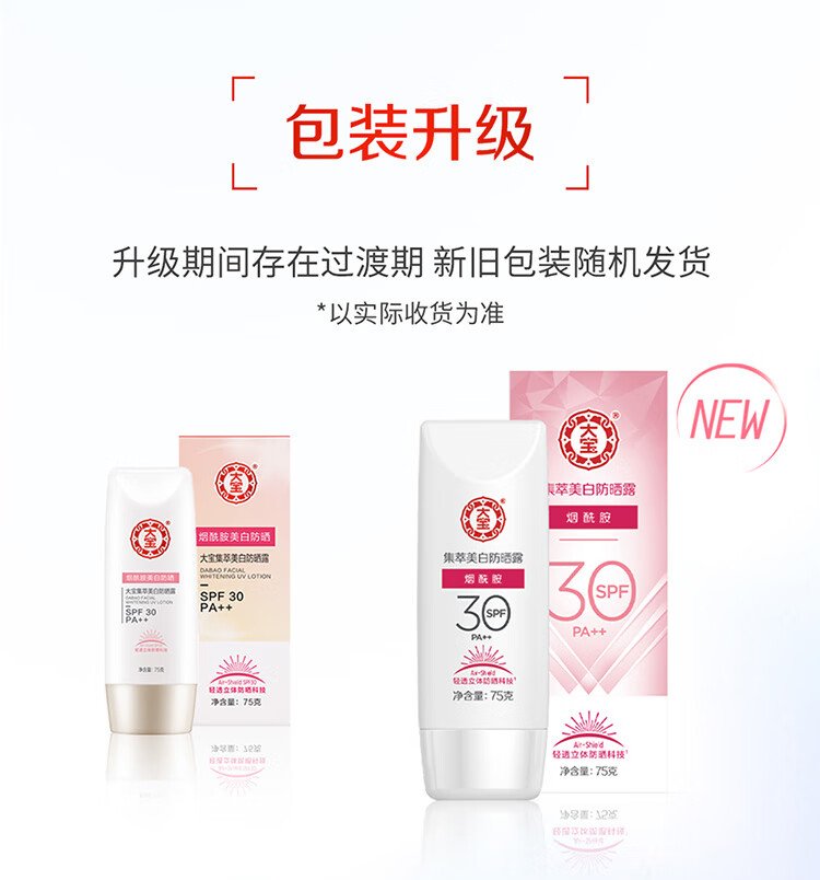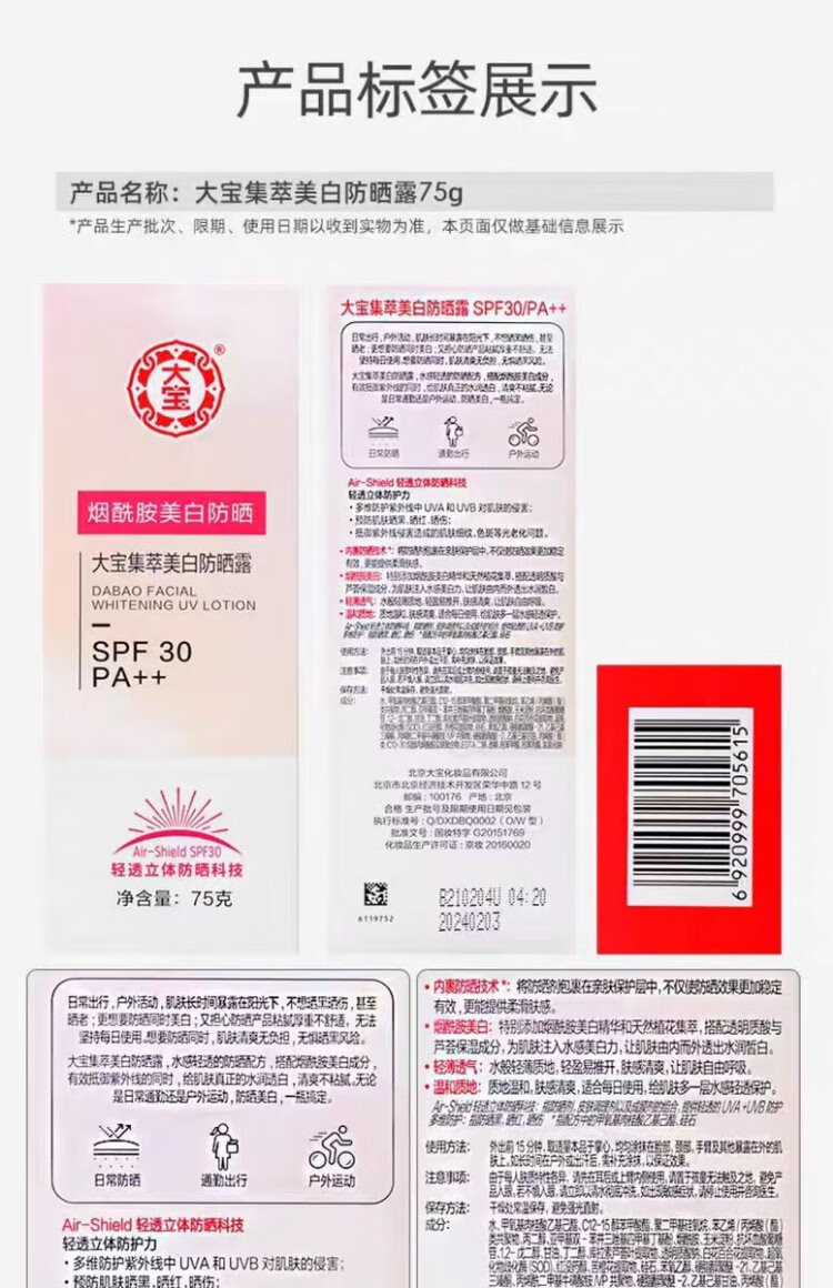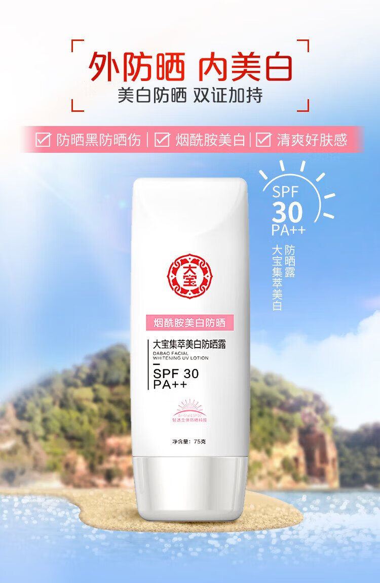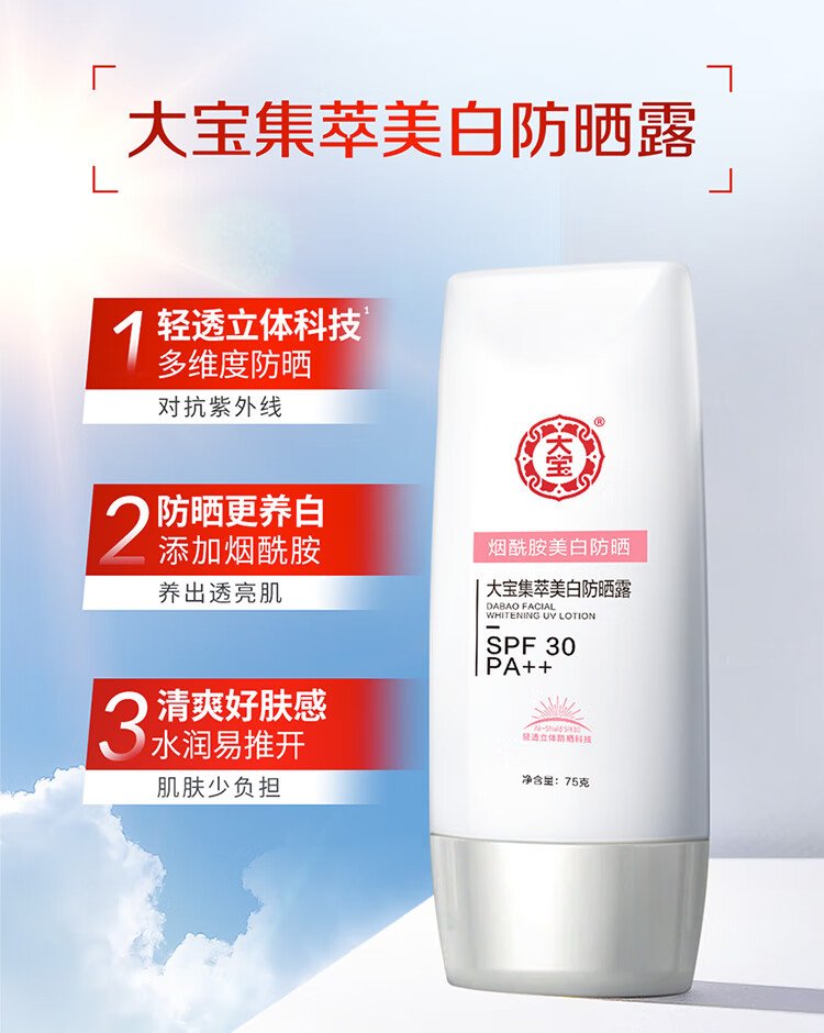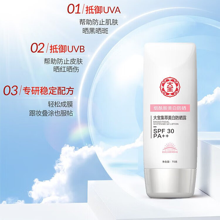 Dabao Collection Whitening Sunscreen Lotion 75g Niacinamide Whitening Sunscreen Cream Facial Skin Care SPF30+