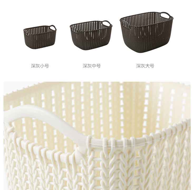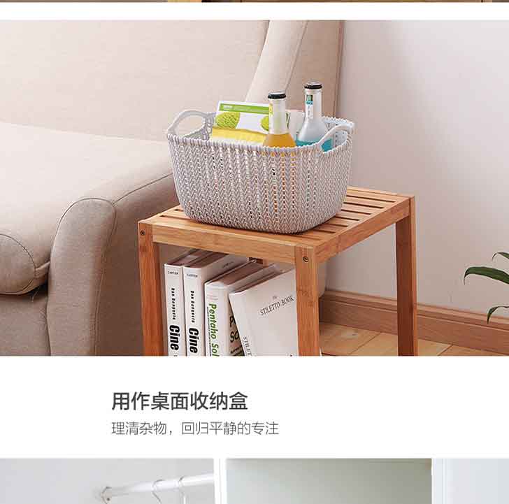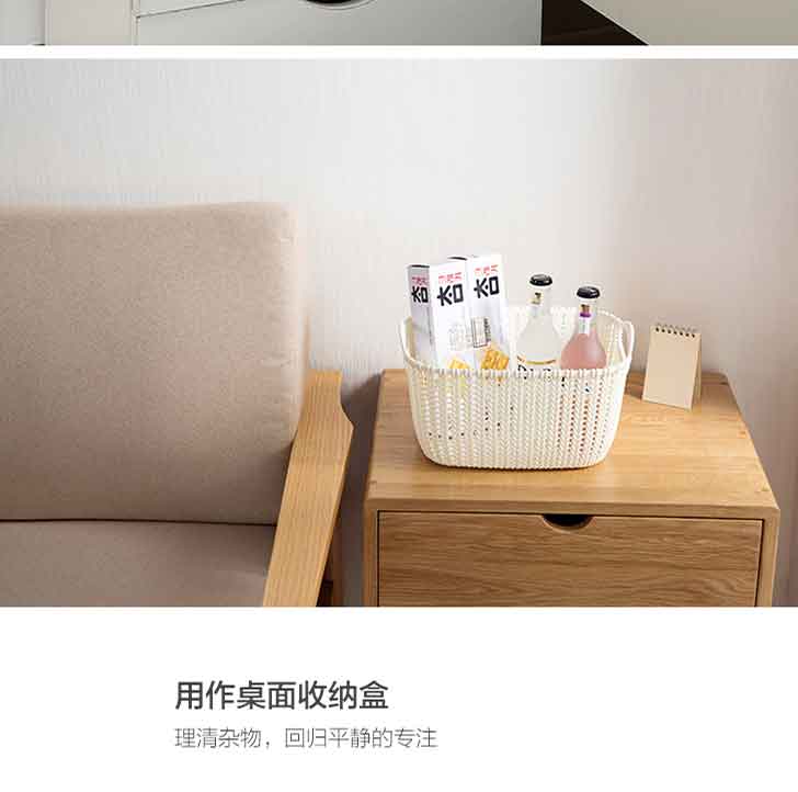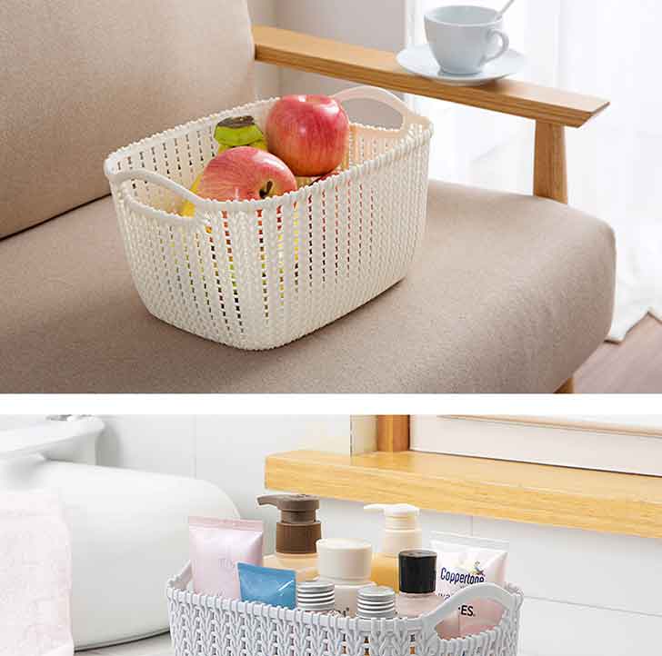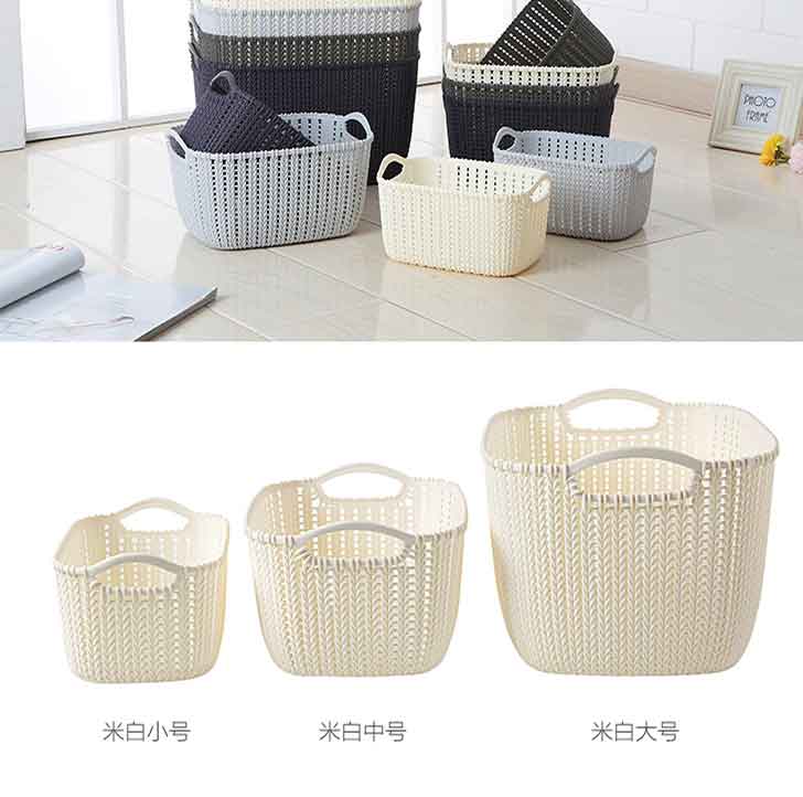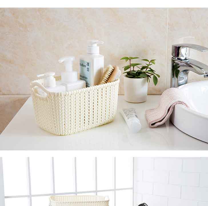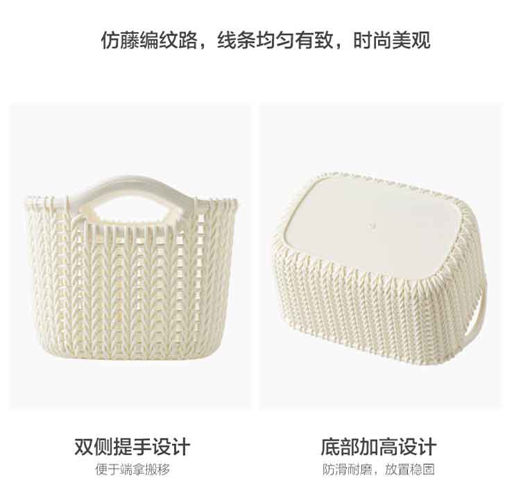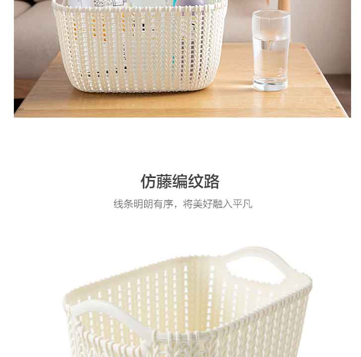 Imitation rattan desktop storage basket plastic woven storage basket kitchen snack storage box bathroom bath basket storage basket beige small size 23.8*16.2*13.7cm