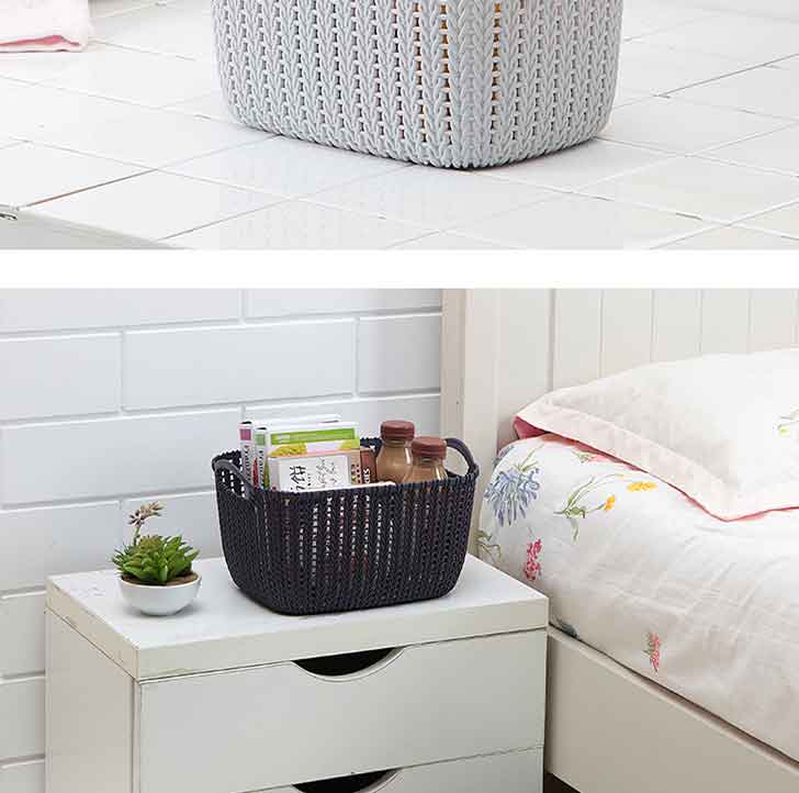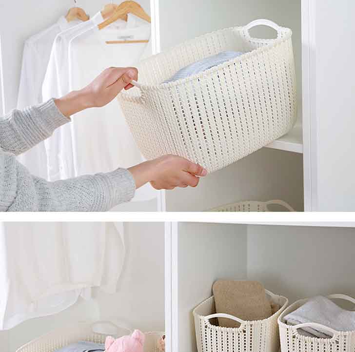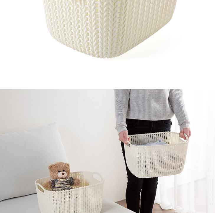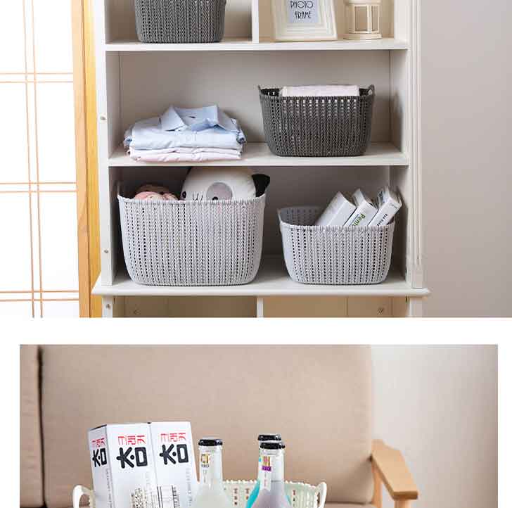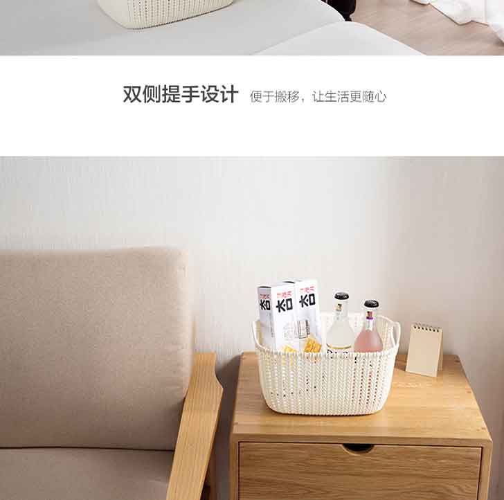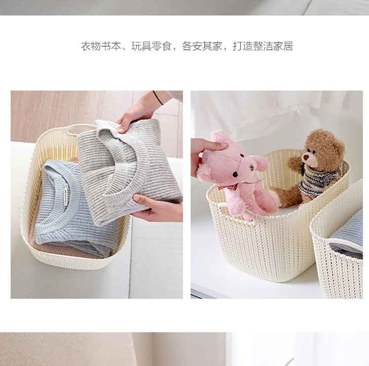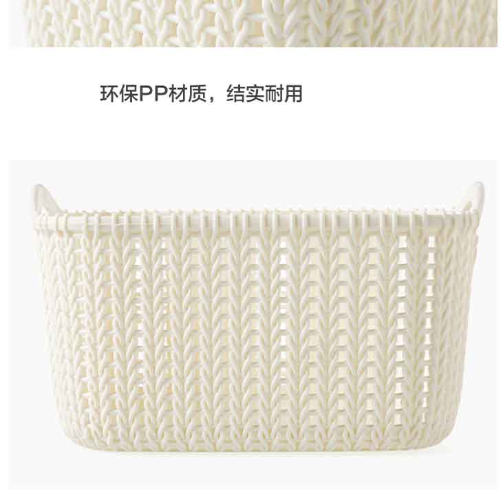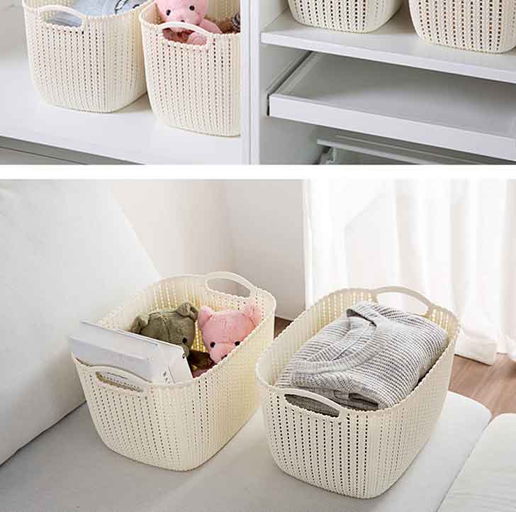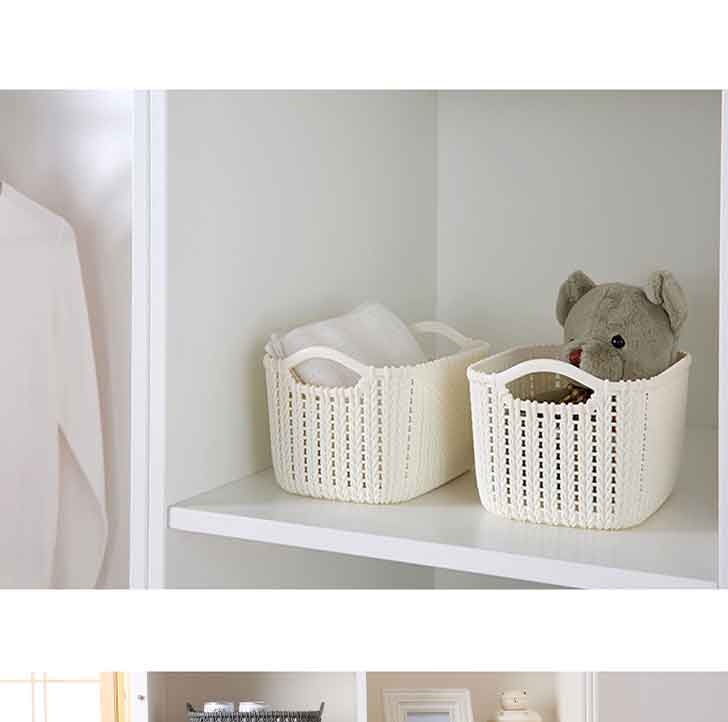 Imitation rattan desktop storage basket plastic woven storage basket kitchen snack storage box bathroom bath basket storage basket beige small size 23.8*16.2*13.7cm