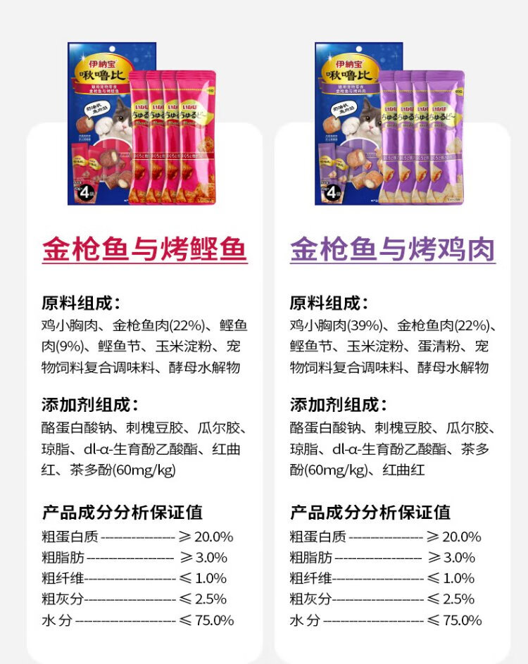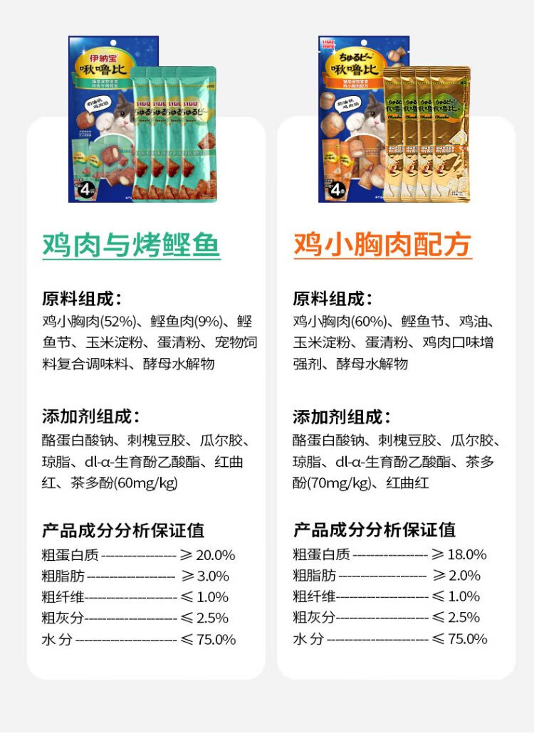 Inaba Cat Snacks Chirubi Cat Snacks Jerky Interactive Reward Nutrition Tuna Grilled Chicken Breasts 10g*4 pieces