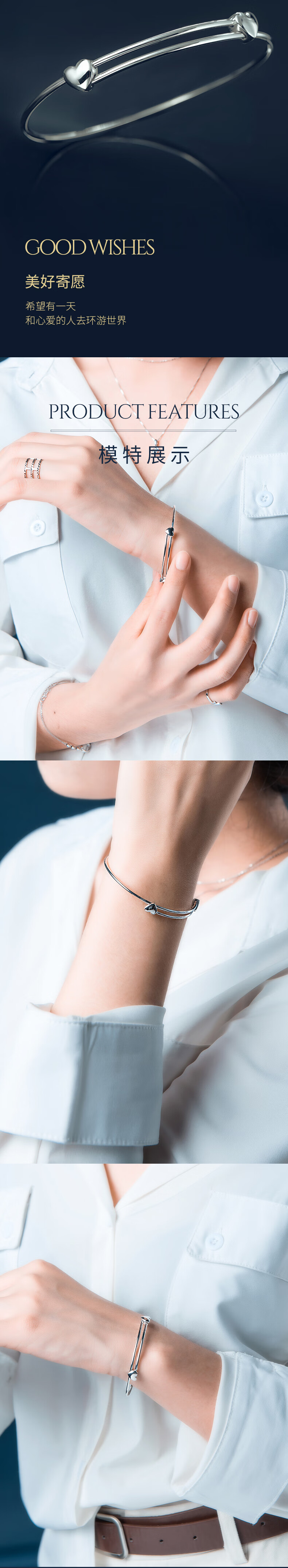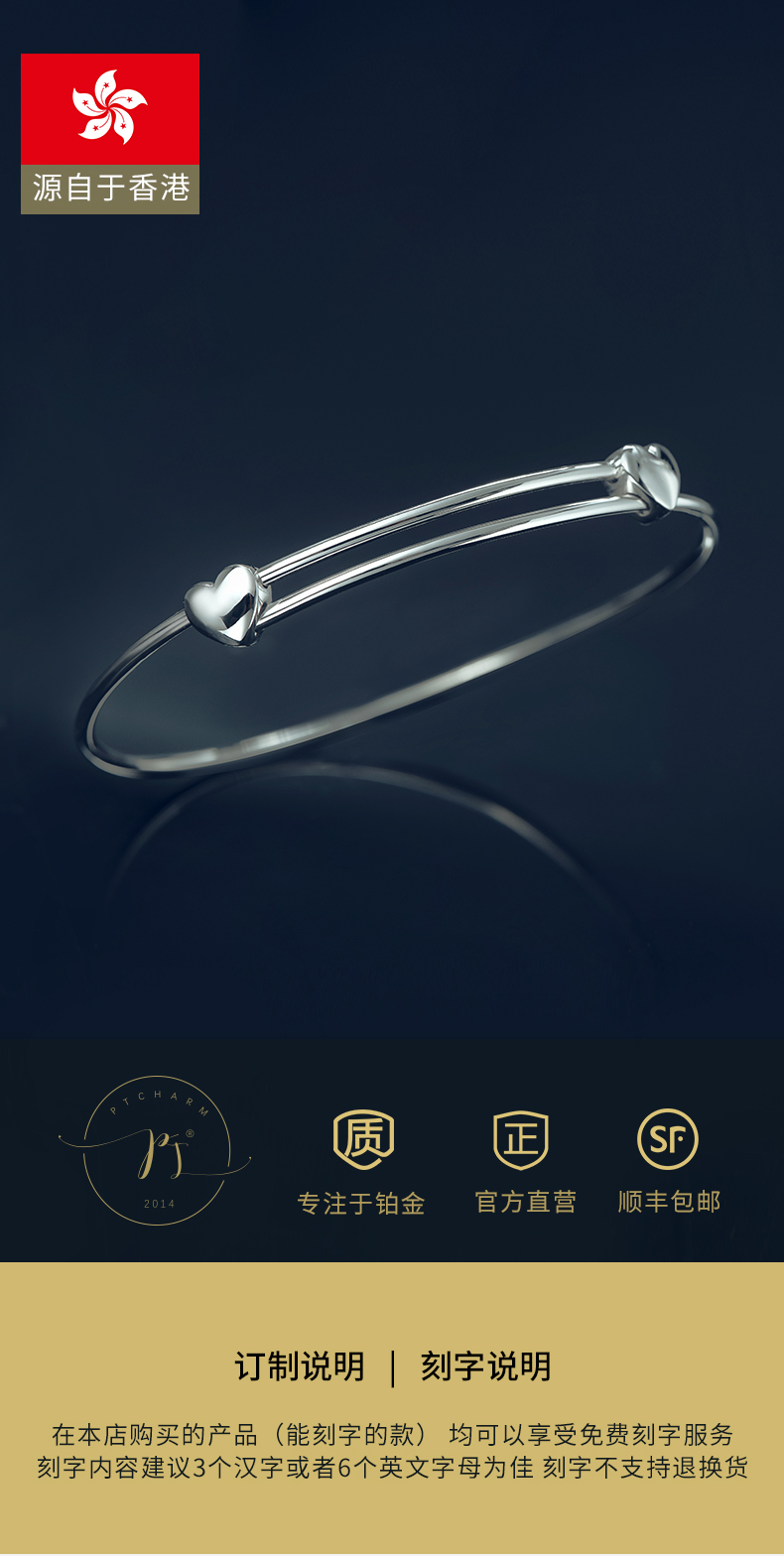 Pt.Charm Platinum Bracelet PT950 Platinum Bracelet Women's Double Love Wedding Bracelet Mother's Day Gift If not in stock, it can be customized. Take 6g as an example