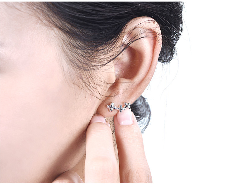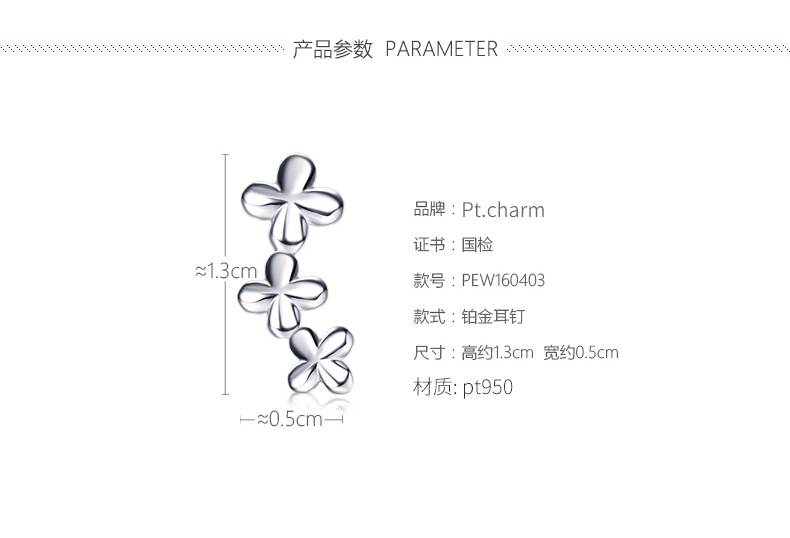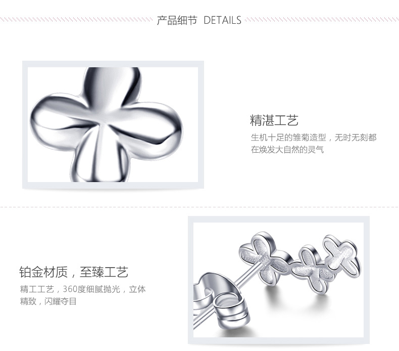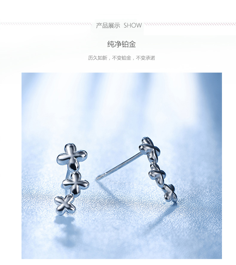 Pt.Charm platinum earrings for women, pt950 platinum earrings, simple and versatile, four-leaf clover, daisy, gift for God, in stock, national inspection certificate, 1.8-1.9g pair