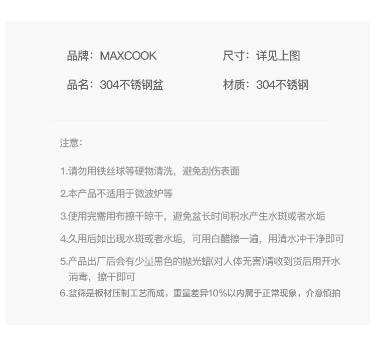 Maxcook thickened 304 stainless steel soup basin 20CM MCWATP20 can be used with induction cooker, wider and deeper