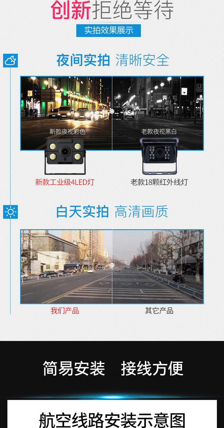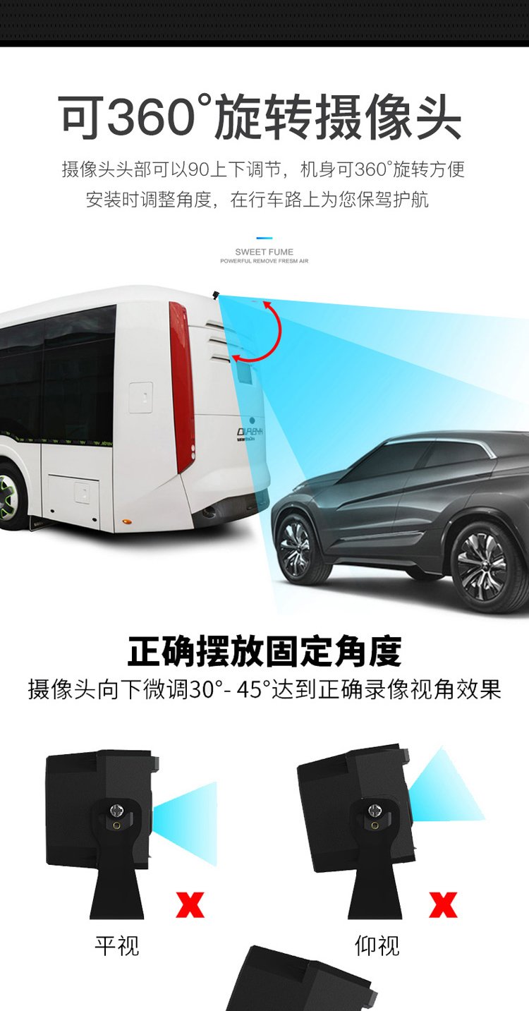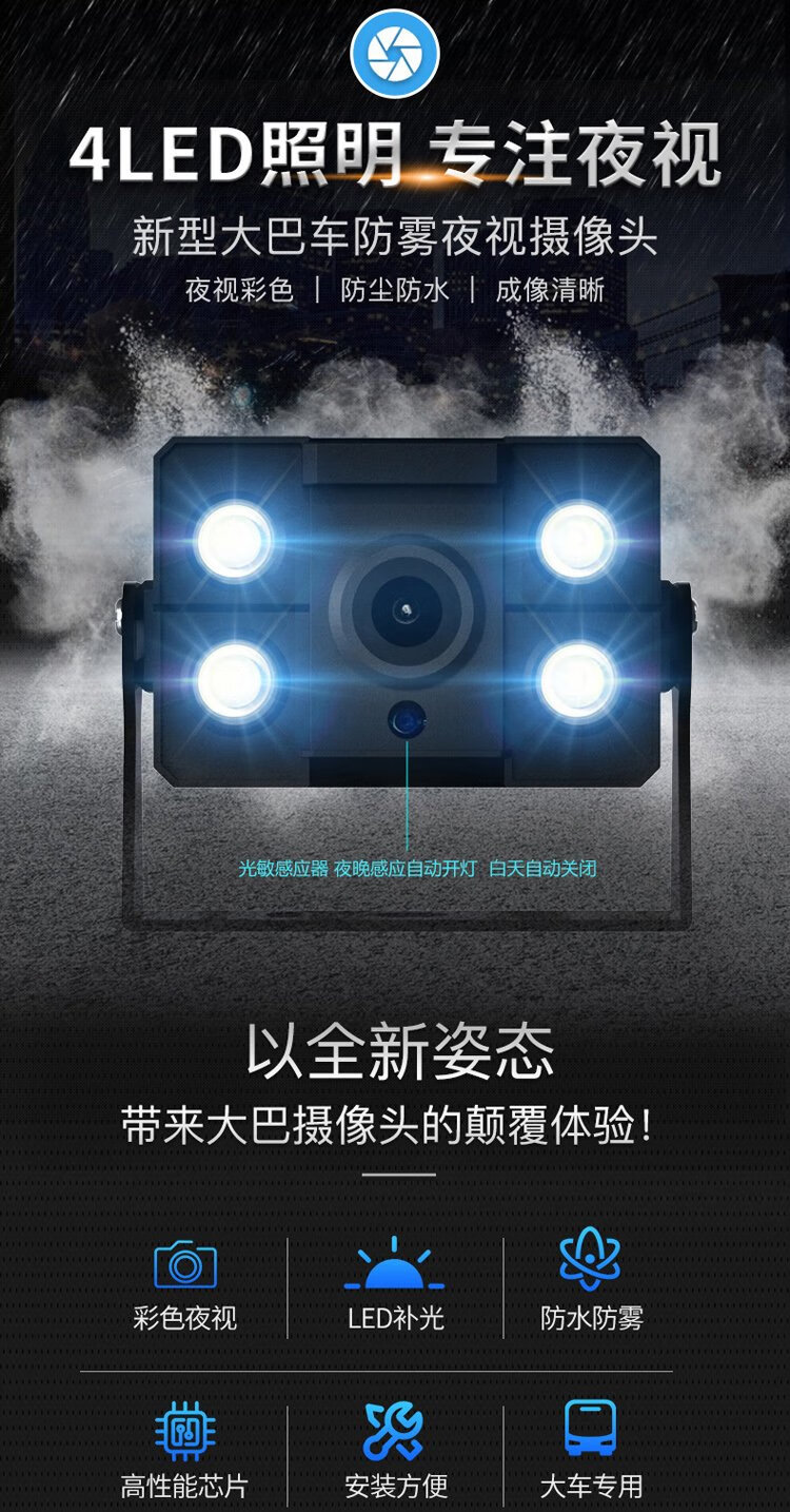Full speed large truck reversing image 24v all-in-one harvester monitoring HD bus camera driving recorder set C3 5-inch bracket screen + bus camera