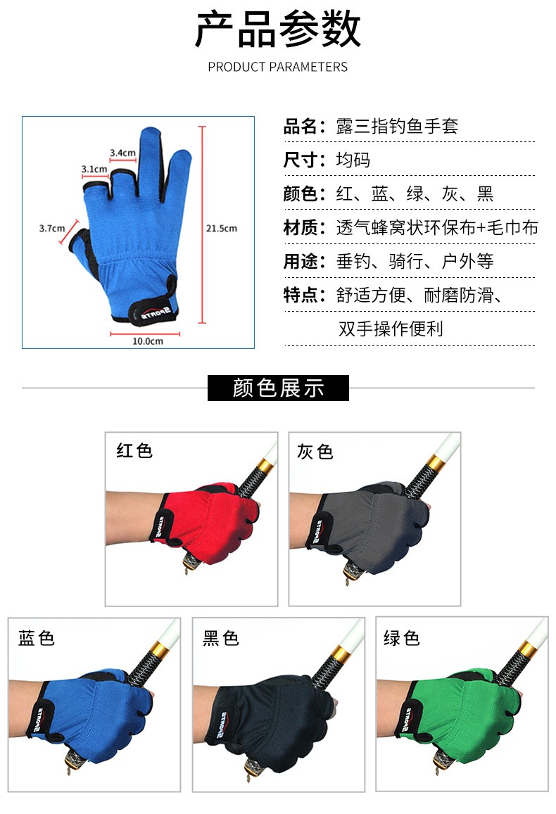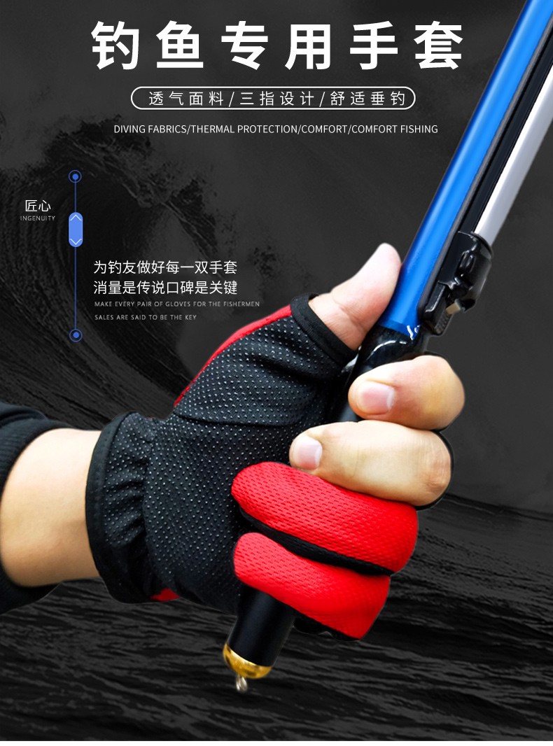 Yingke Fishing Gloves Fishing Freeze Resistant Warm Dew Three Finger Breathable Outdoor Mountaineering Travel Supplies Non-Slip Lure Sunscreen Blue (One Pair) One Size
