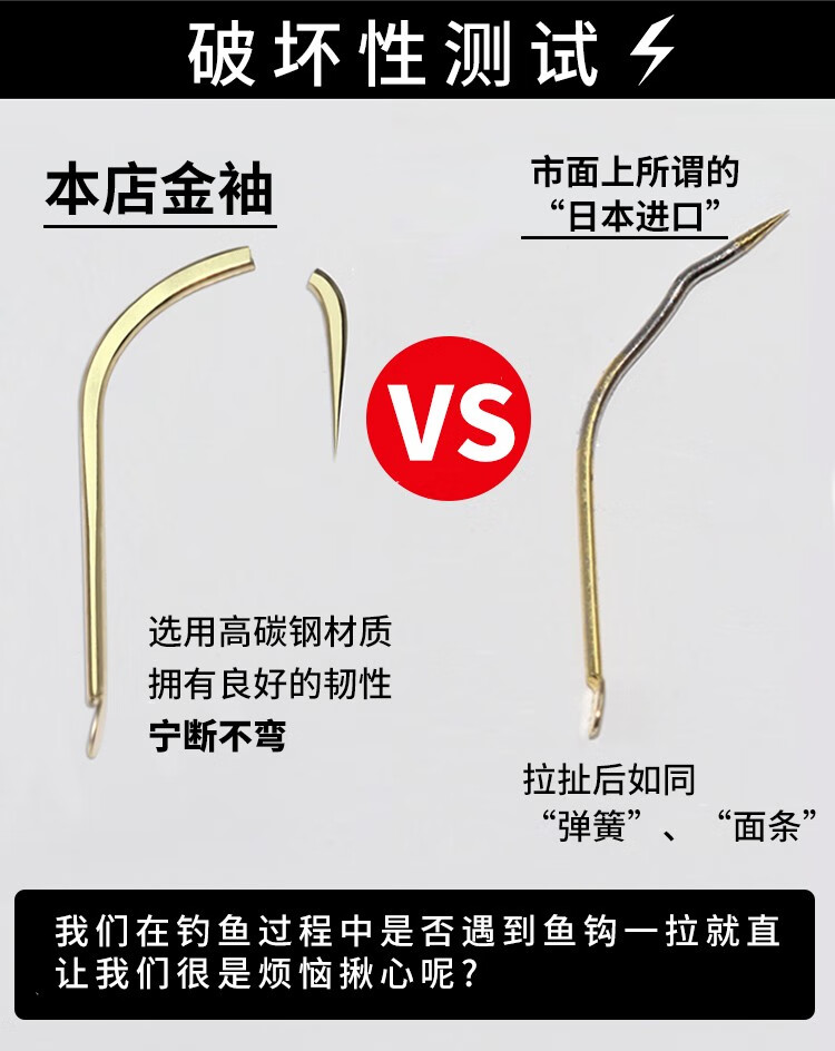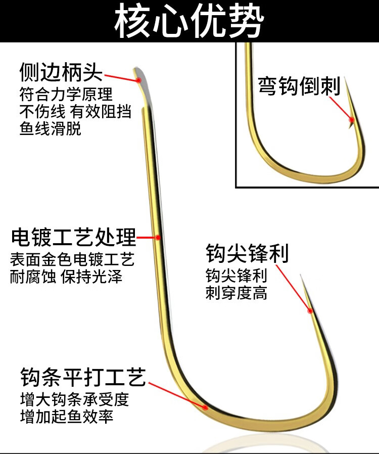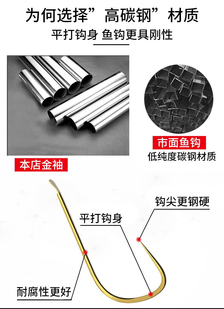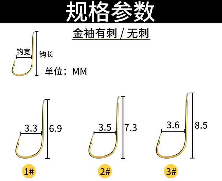 Yingke Fish Hooks Bulk 50 Gold Sleeve Fish Hooks Bulk Thin Strips Long-Handed Crucian Carp Sleeve Hooks Boxed Wild Fishing Fishing Thorns and No Thorns Boxed (50 pieces) Thorns 4#