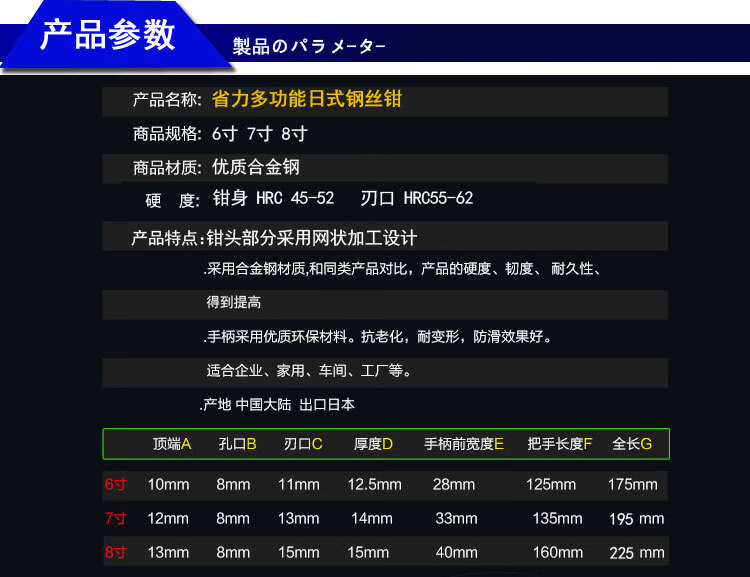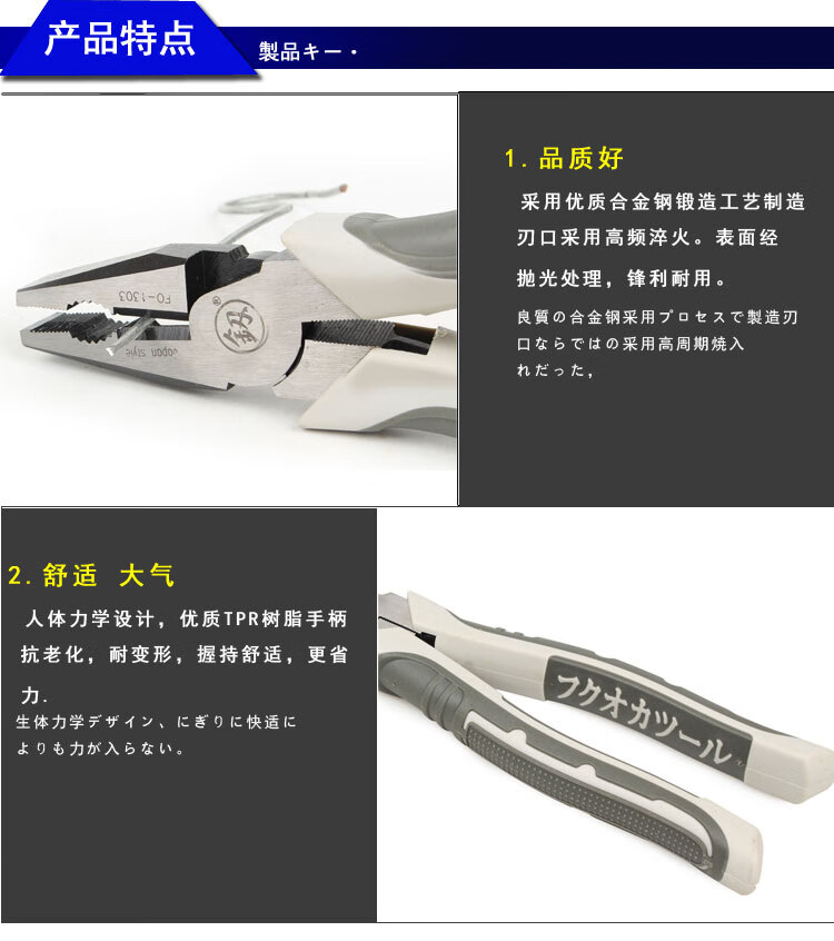 鰰Fukuoka Tools Labor-saving multi-functional Japanese wire pliers vise industrial-grade household pliers tool 8-inch FO-1303 cable port