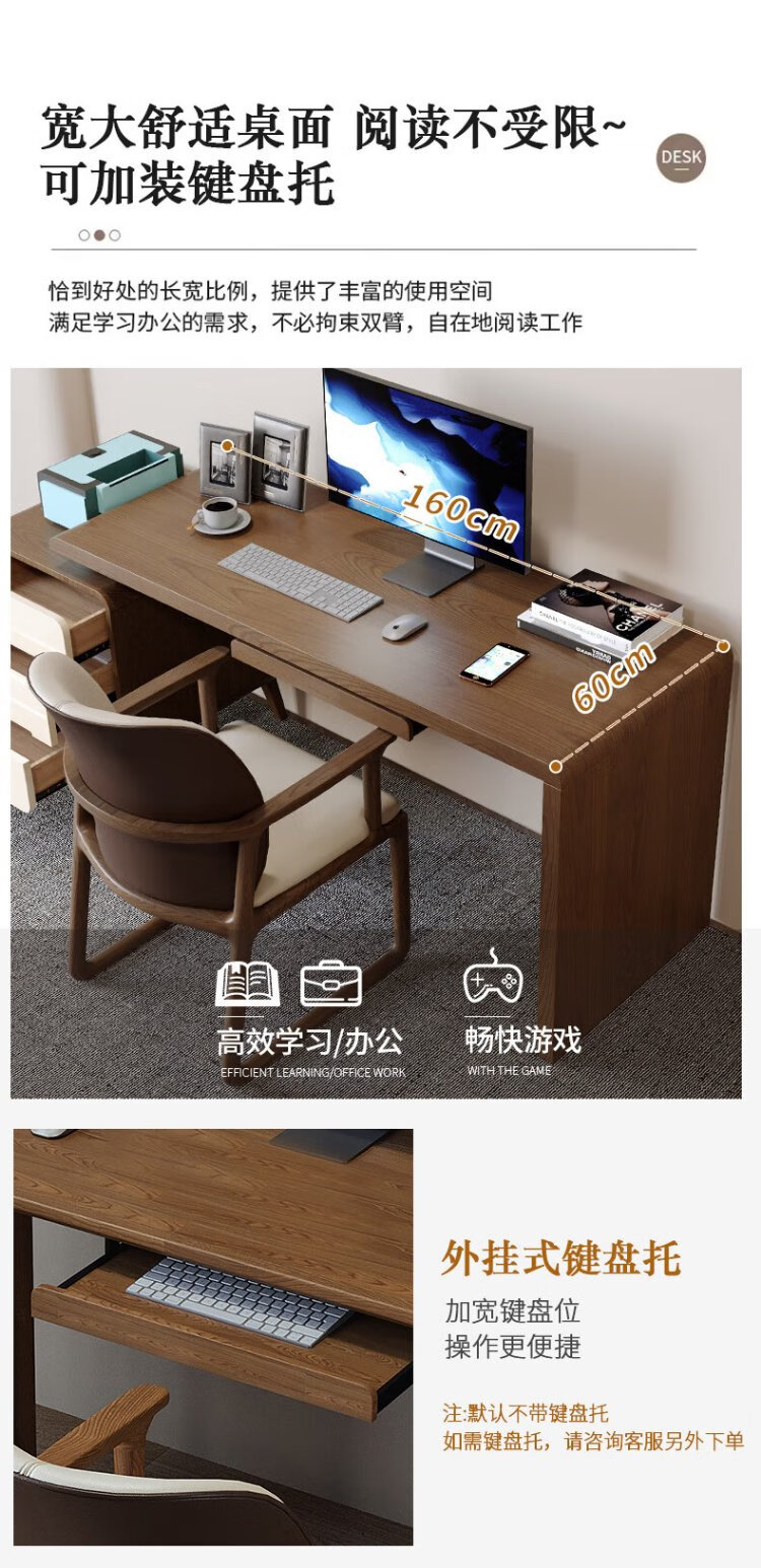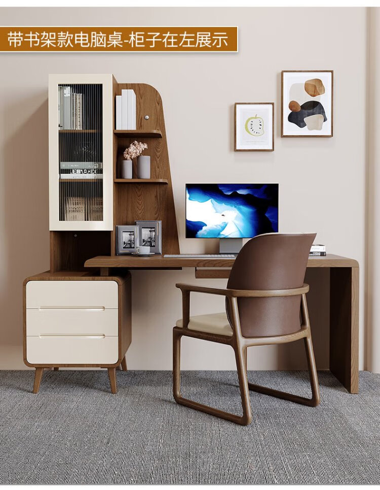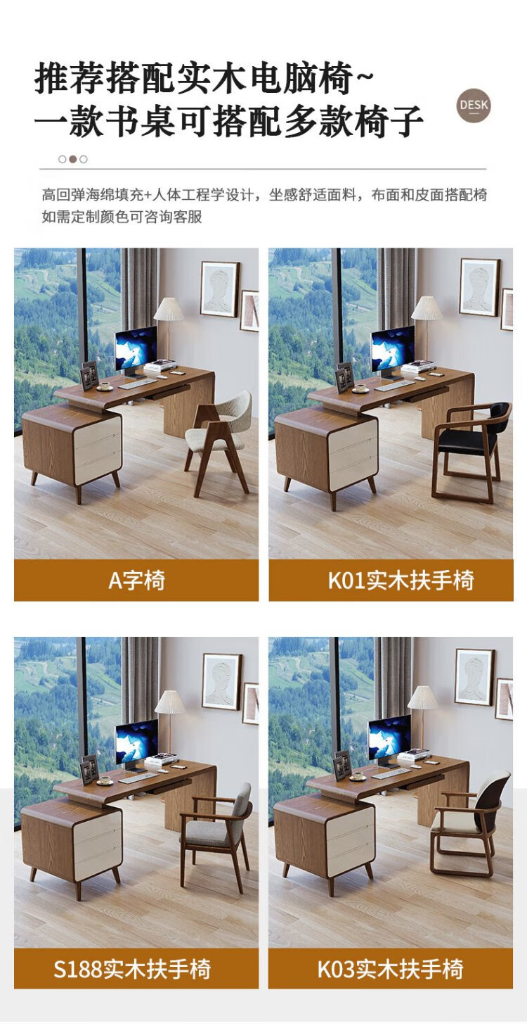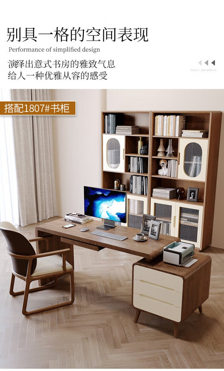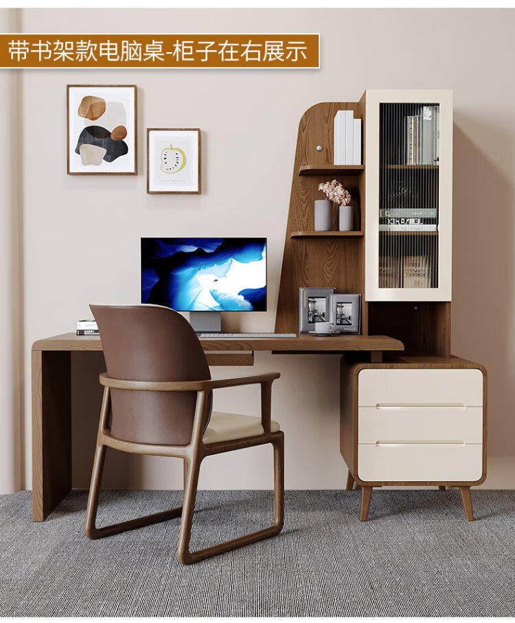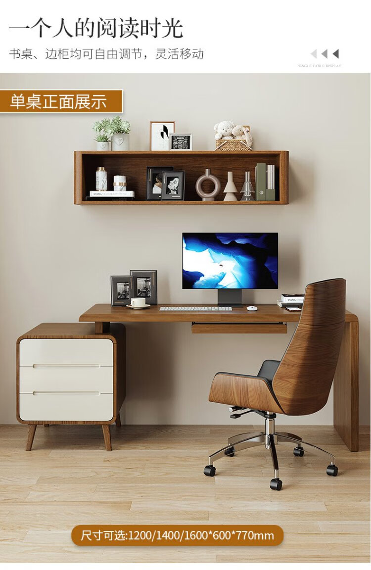 Silan Mengbei solid wood desk and cabinet integrated desk light luxury modern corner computer desk home bedroom study workbench writing desk upgraded solid wood desk without chair 1200*600*770mm (keyboard tray shot separately)