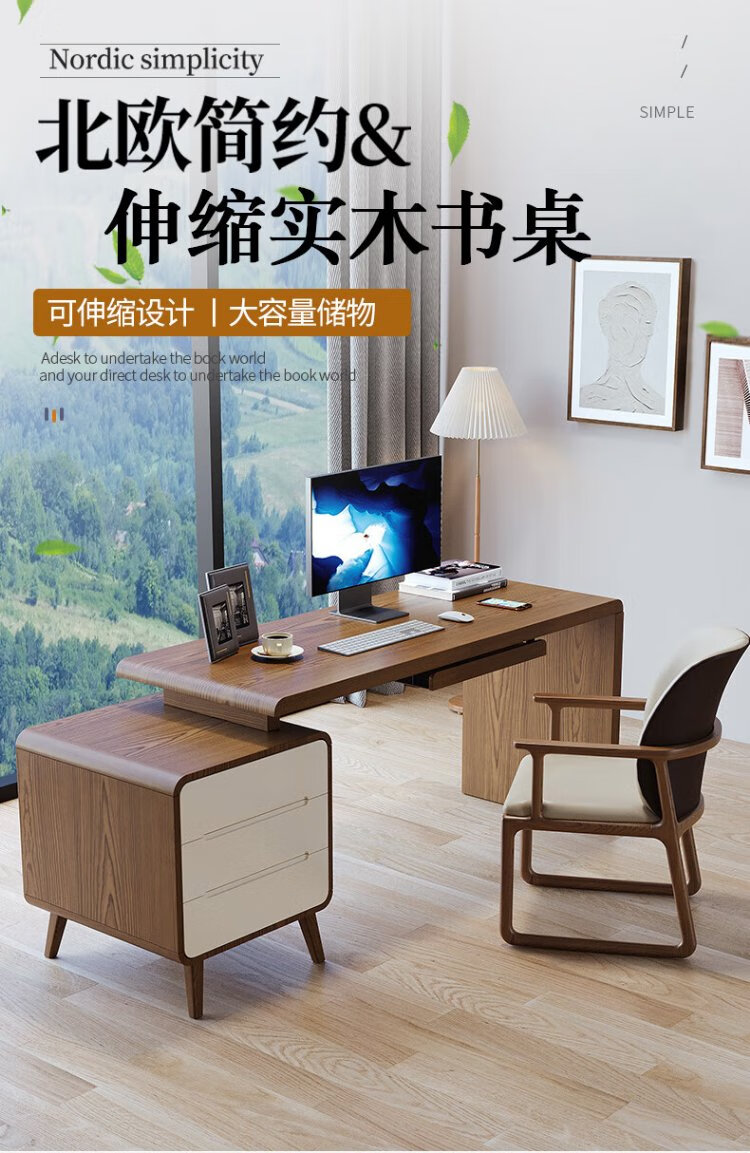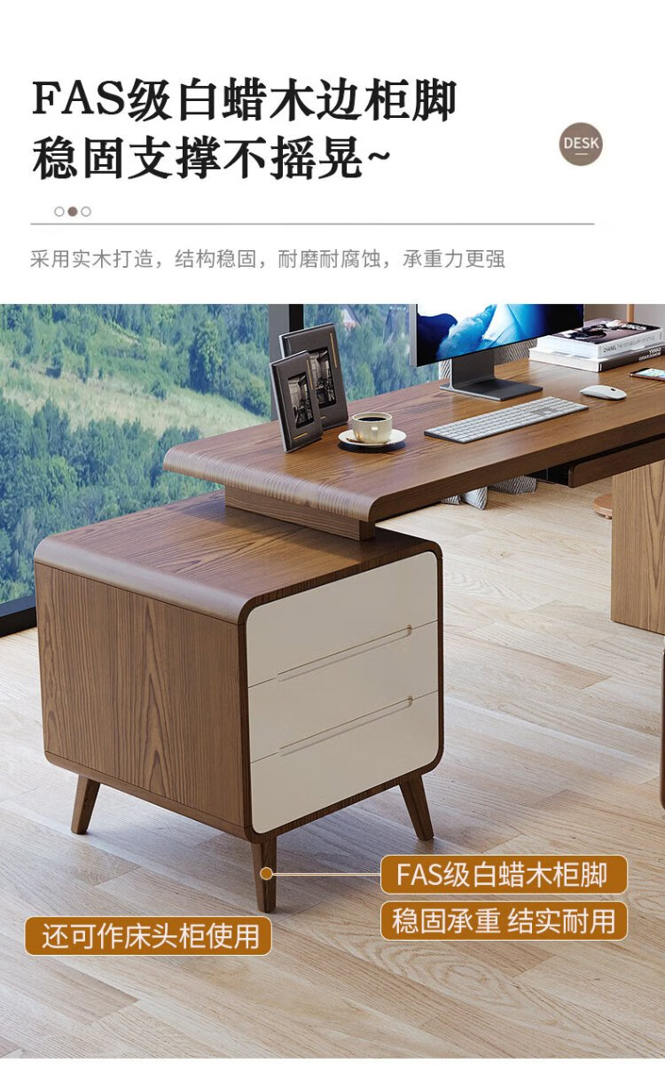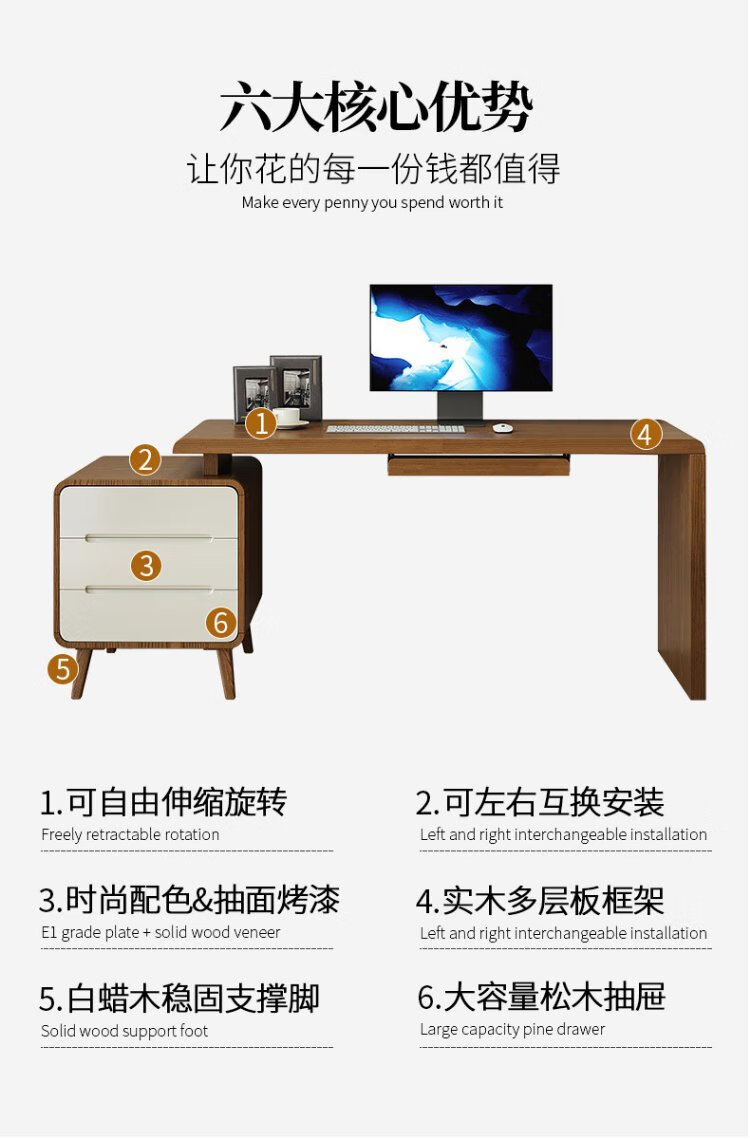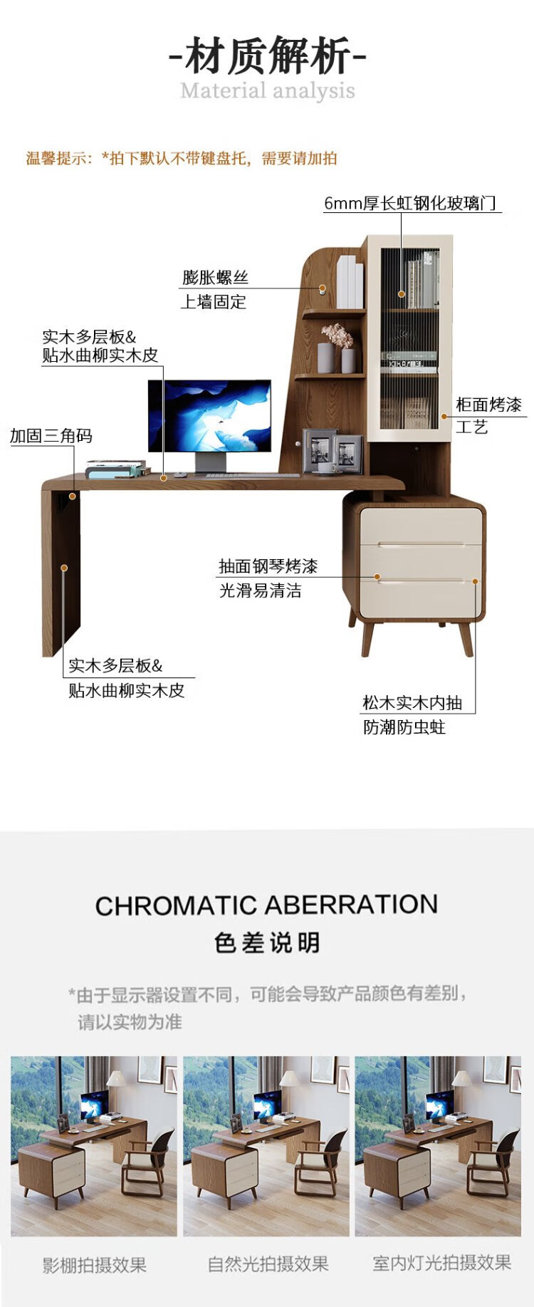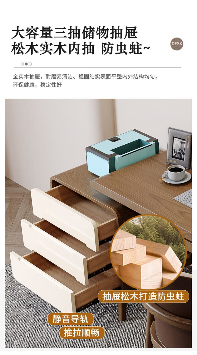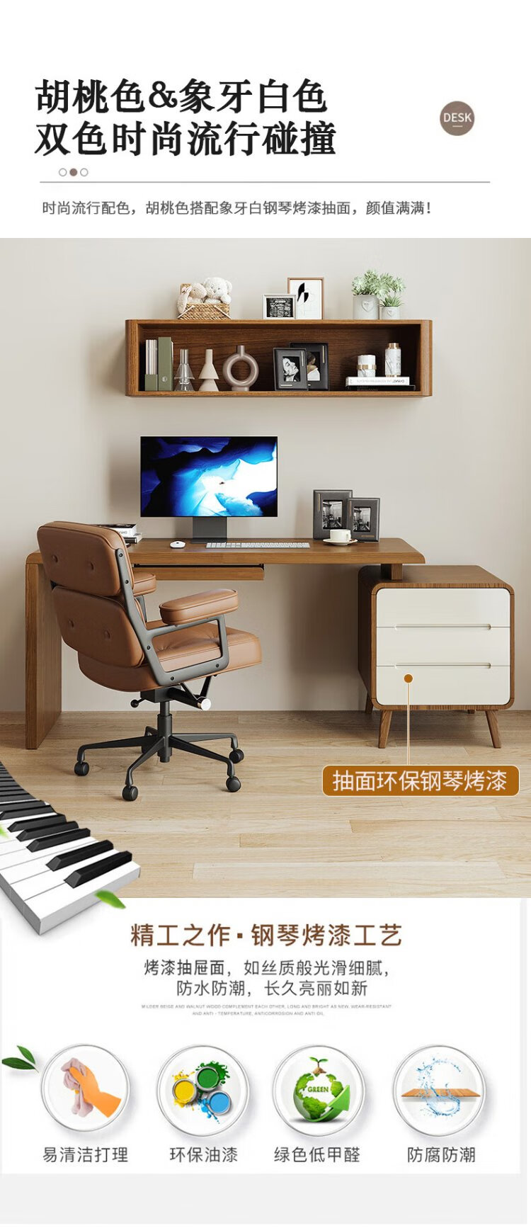 Silan Mengbei solid wood desk and cabinet integrated desk light luxury modern corner computer desk home bedroom study workbench writing desk upgraded solid wood desk without chair 1200*600*770mm (keyboard tray shot separately)