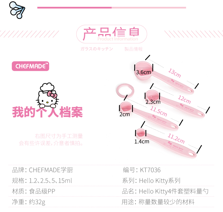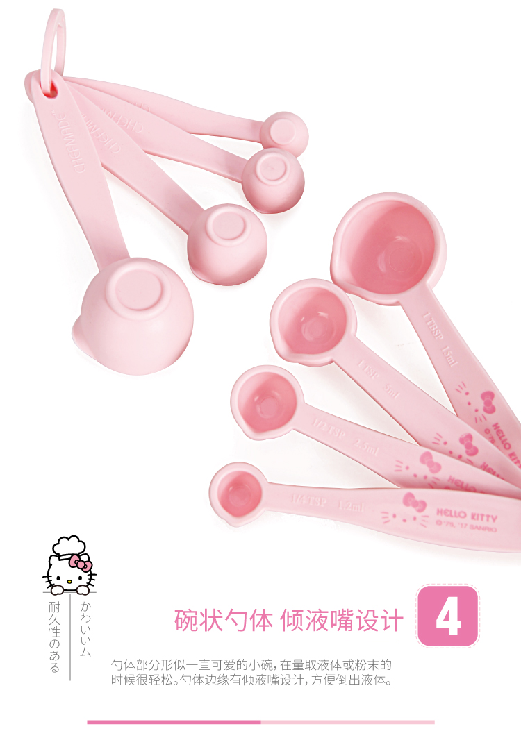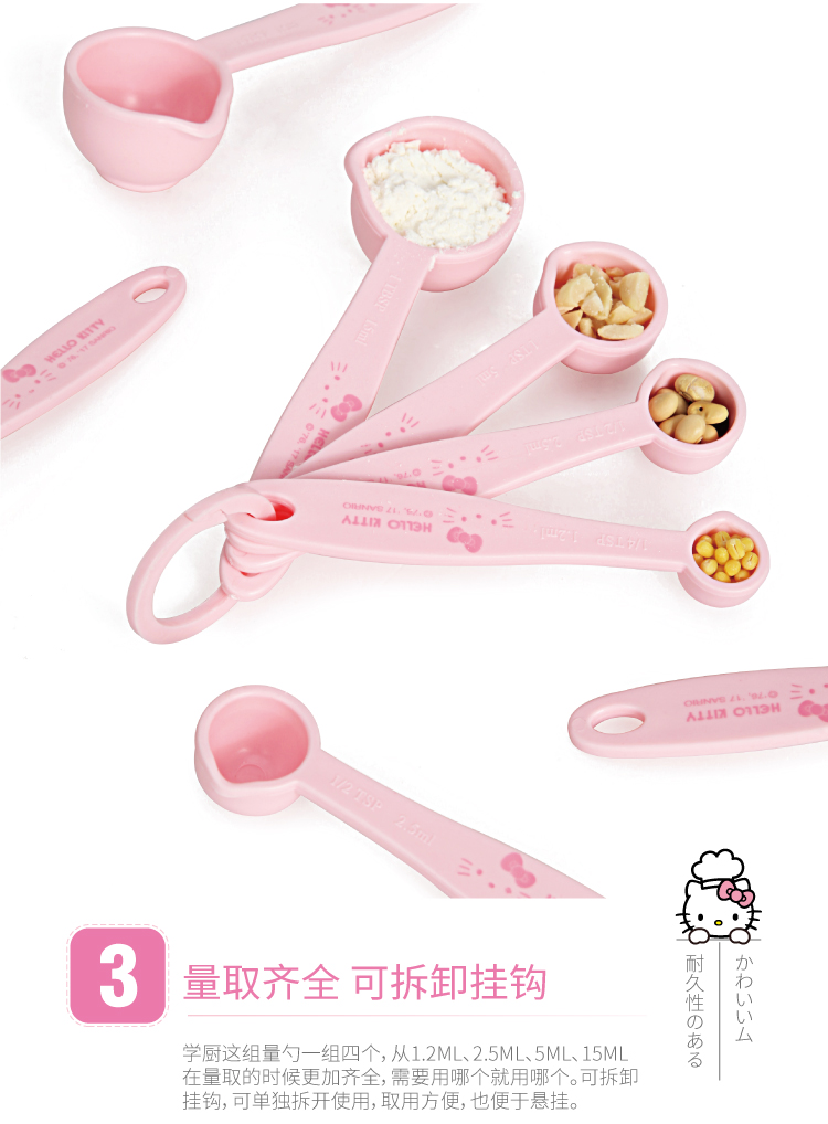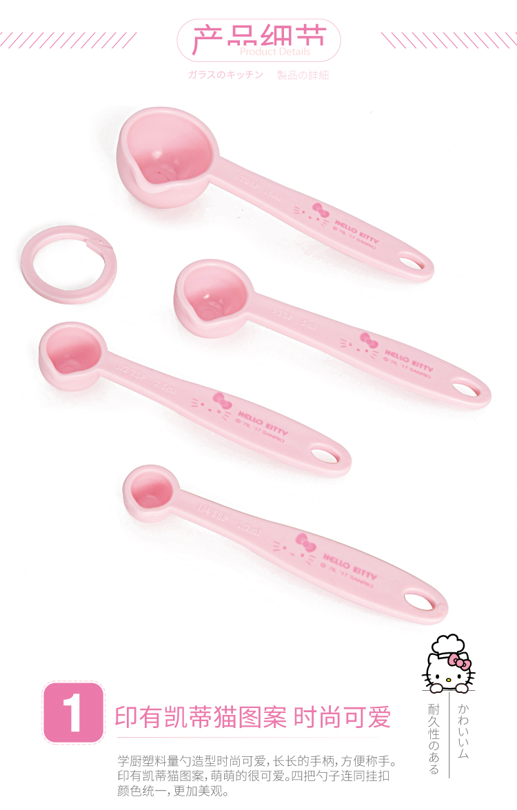 Learning Kitchen Measuring Spoon Kitchen Graduation Scale Measuring Spoon Baking Household Controlled Salt Spoon KT Cat Plastic Spoon 4-piece Set