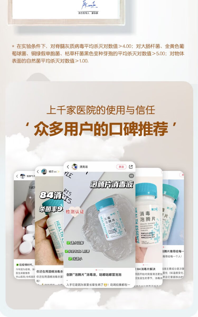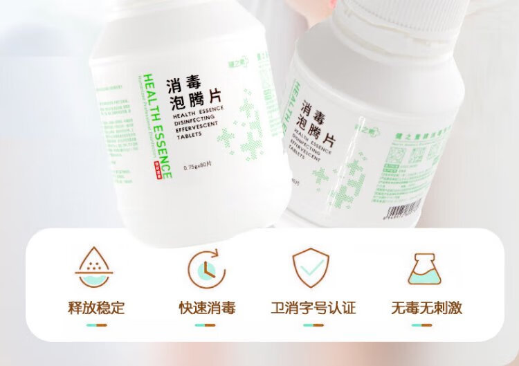 Jianzhisu Disinfection Effervescent Tablets Fully Effective Disinfection for Washing Machines Containing Chlorine 80 Tablets/Bottle