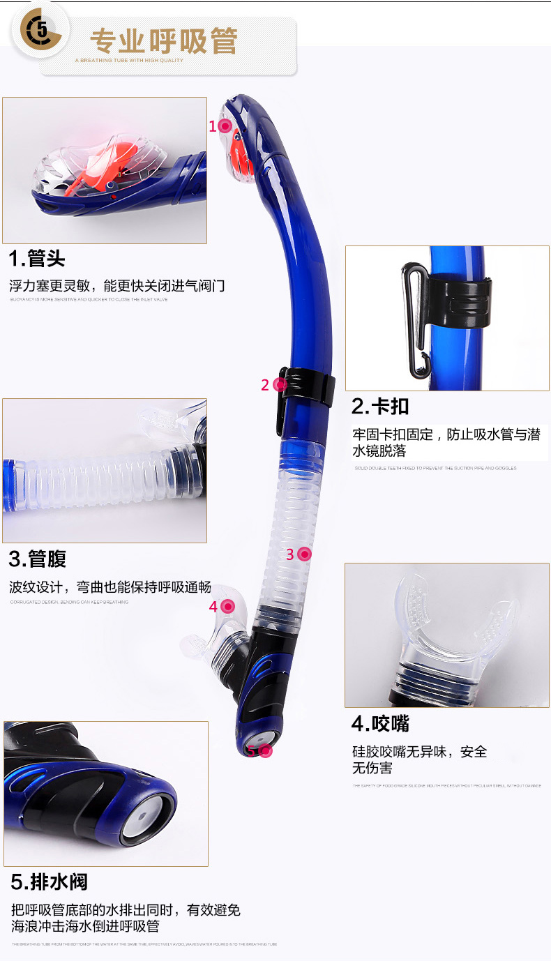 Xuanhai diving goggles free snorkeling mask large frame high-definition nose protection all-in-one men's and women's fully dry snorkel deep diving equipment M11 black diving goggles (free anti-fog agent)