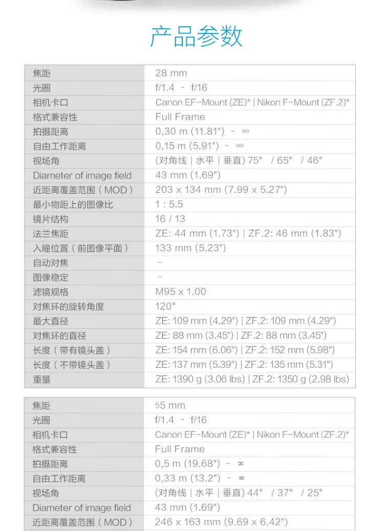 Zeiss (ZEISS) Otus full-frame SLR camera lens Owl manual focus 28mm f/1.4 wide-angle fixed focus 1.4/28 ZE Canon mount