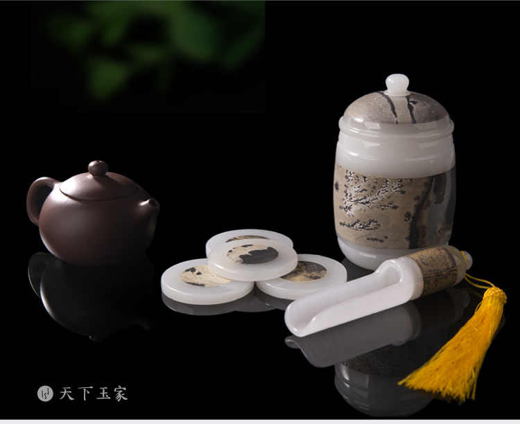 Tianxia Yujia Jade Tea Caddy Tea Tray Tea Set Accessories Living Room Desktop Decoration Business Gift Creative Gift Box Tea Caddy Set