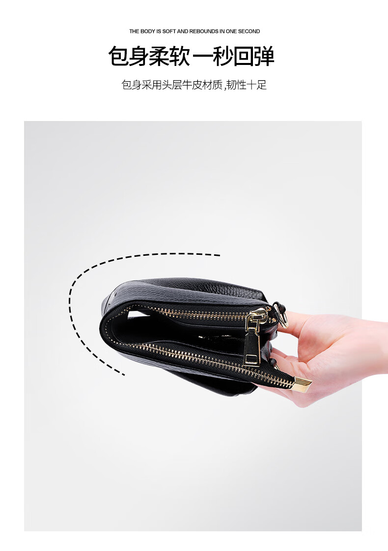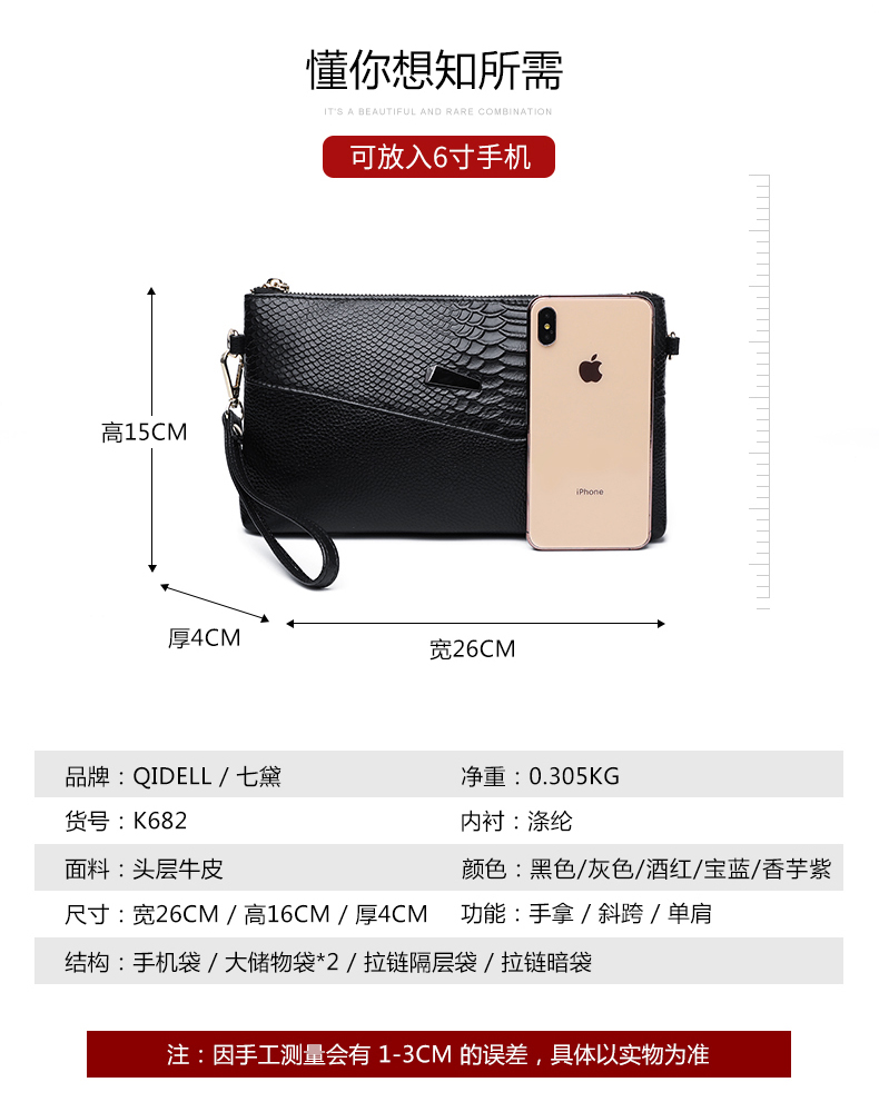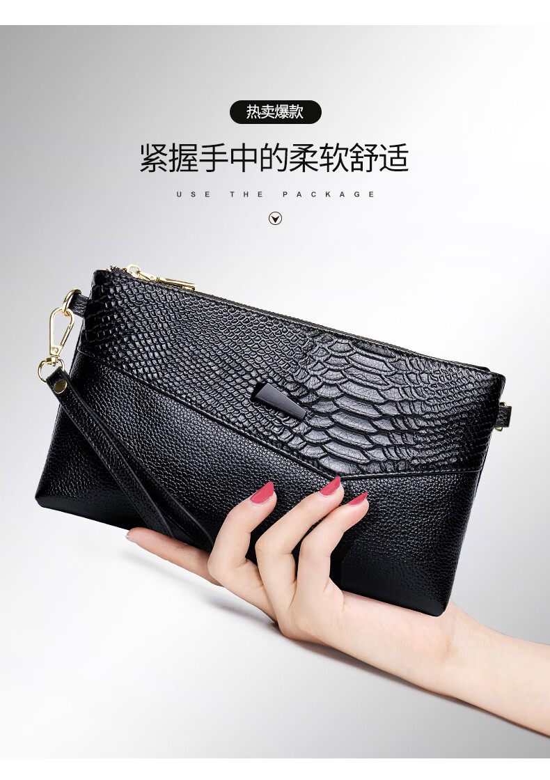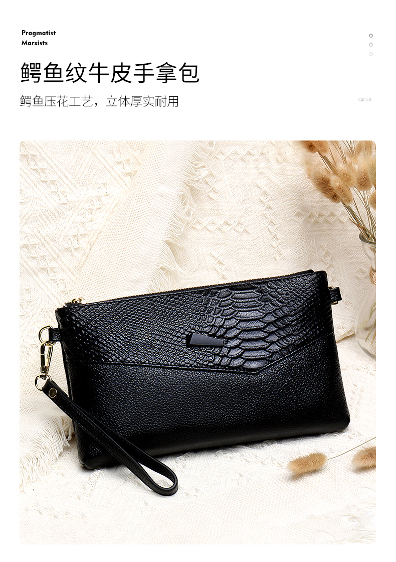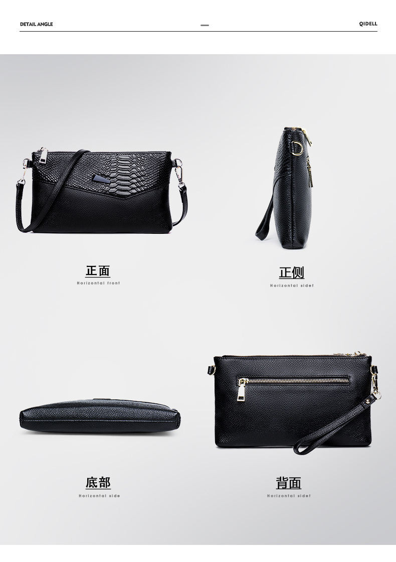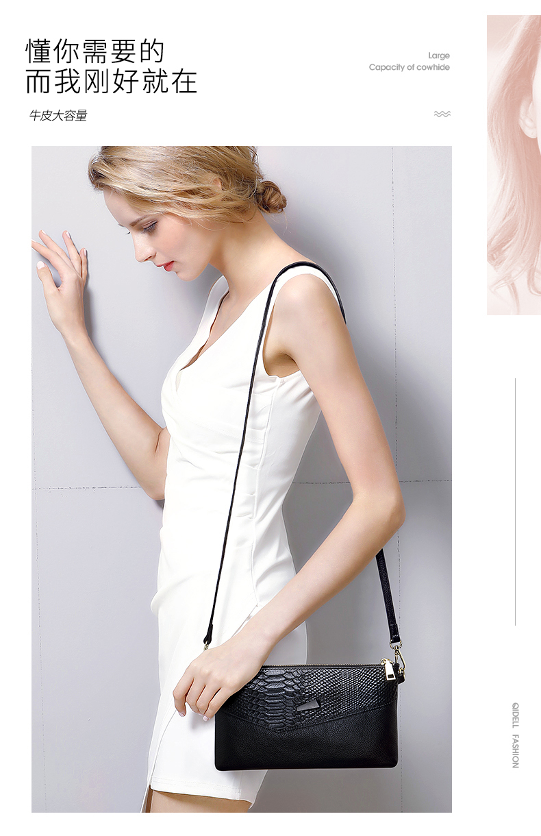 Qidell Clutch Women's Genuine Cowhide New Korean Style Large Capacity Clutch Bag Fashion Cowhide Crossbody Bag Women's Handbag Black