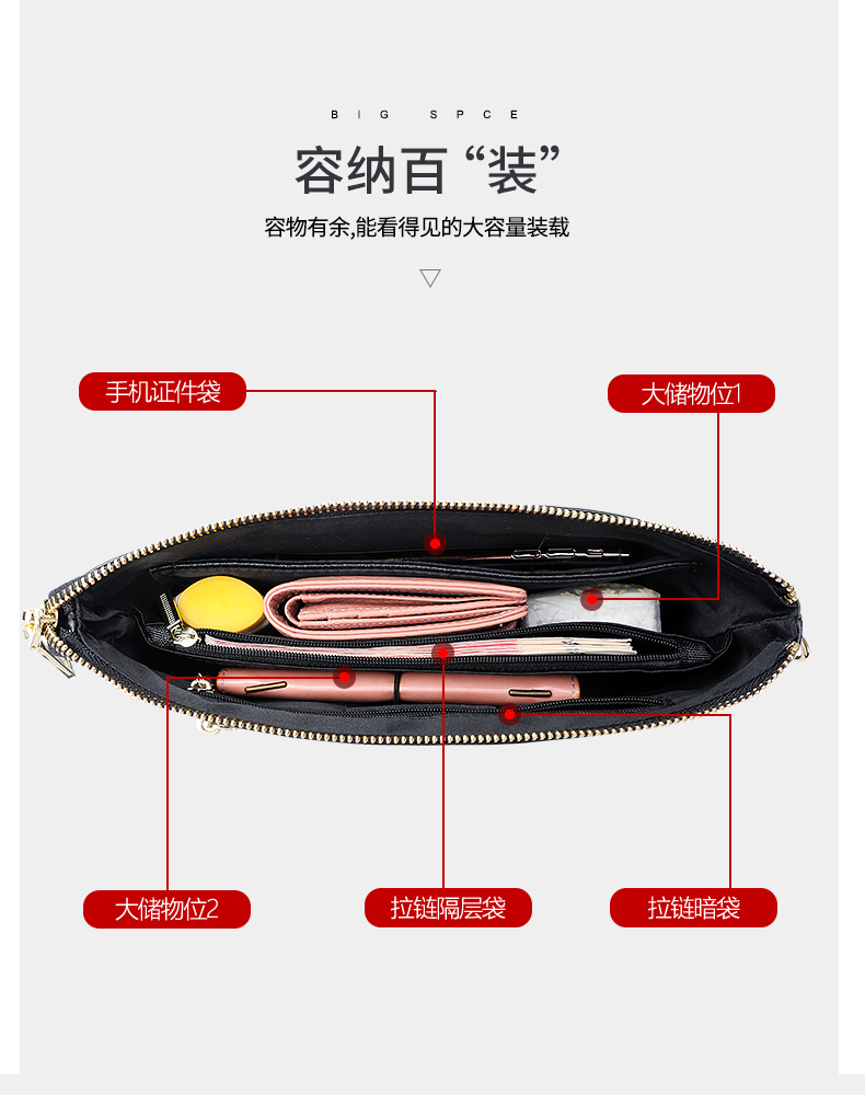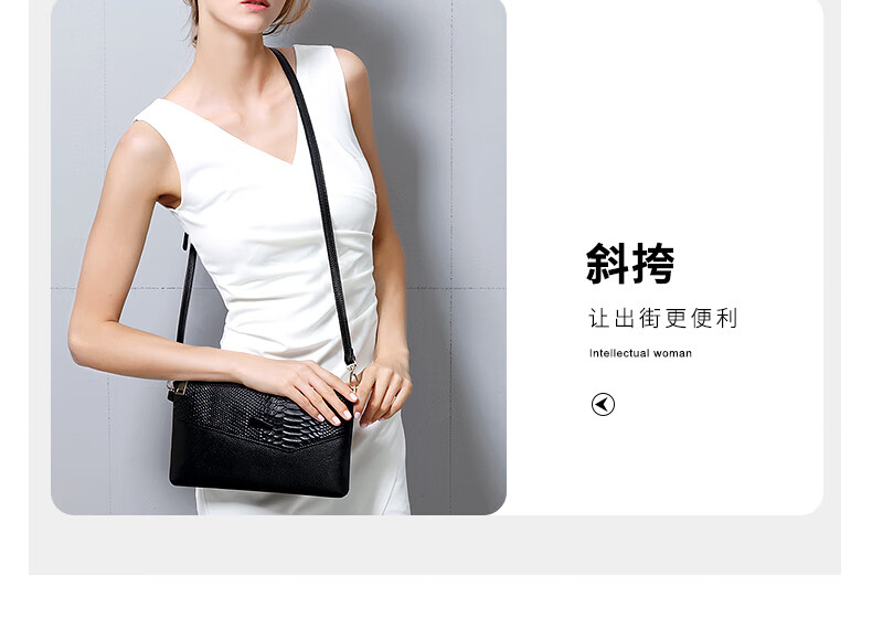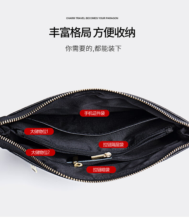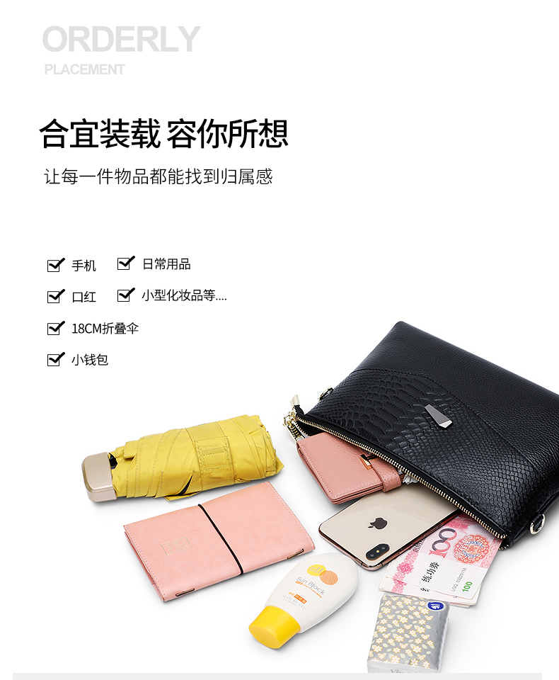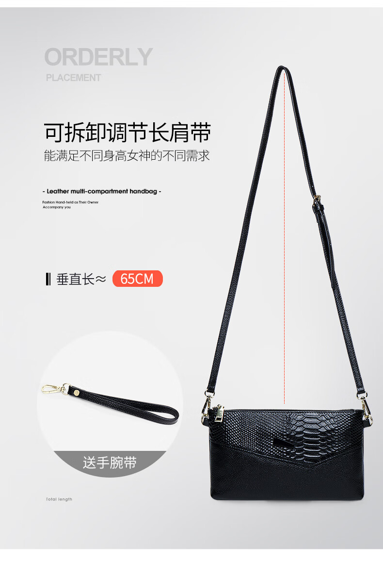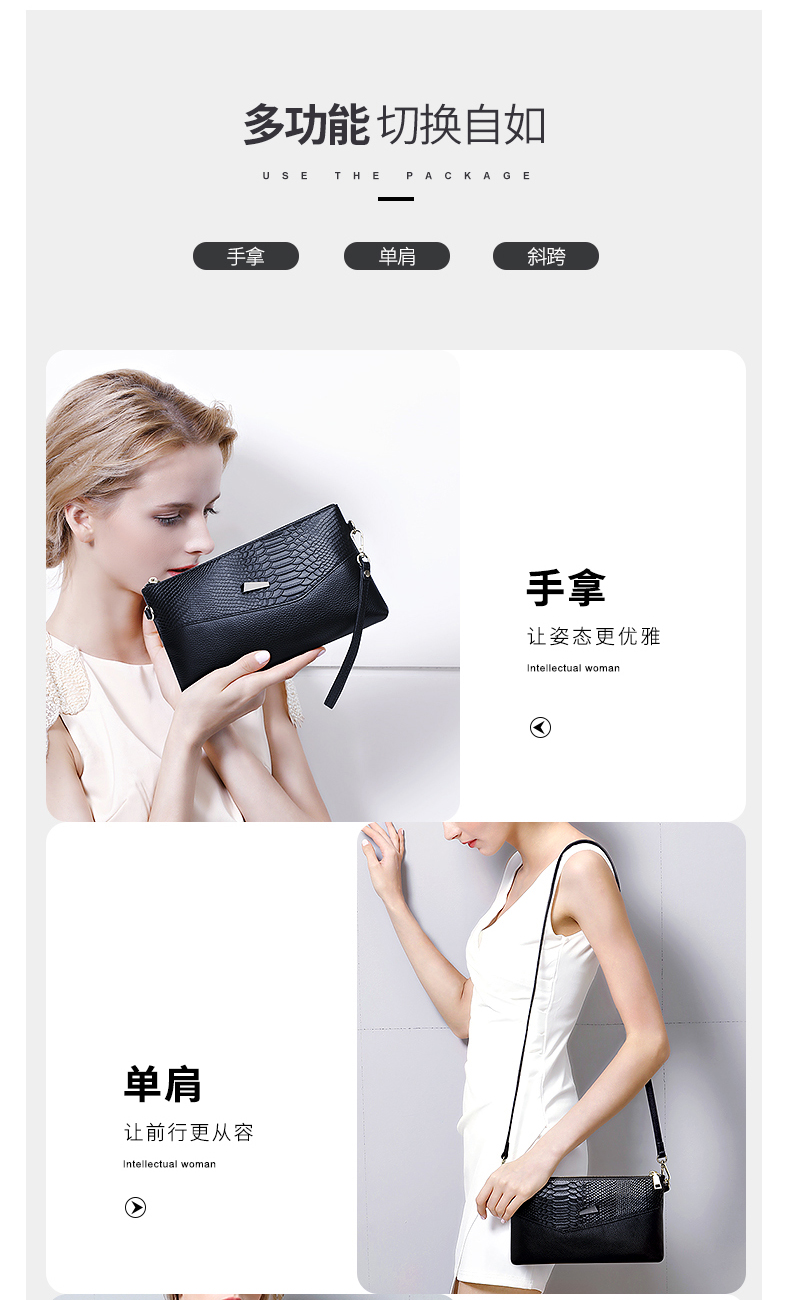Qidell Clutch Women's Genuine Cowhide New Korean Style Large Capacity Clutch Bag Fashion Cowhide Crossbody Bag Women's Handbag Black