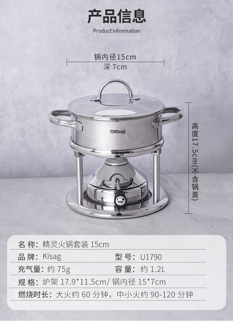 Kisag Wagbel stove 15cm stainless steel small hot pot pot for one person, one pot, home catering, hotel club, mutton hot pot 15cm elf 15cm