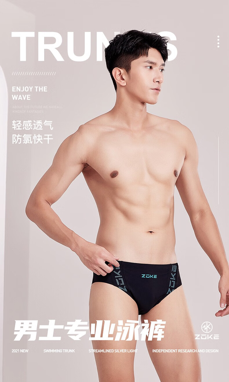Zhouke's nouveau maillot de bain pour hommes triangle taille basse serré mode sportive maillot de bain professionnel à séchage rapide pour hommes noir 121502103 + bonnet de bain 620503203 XL