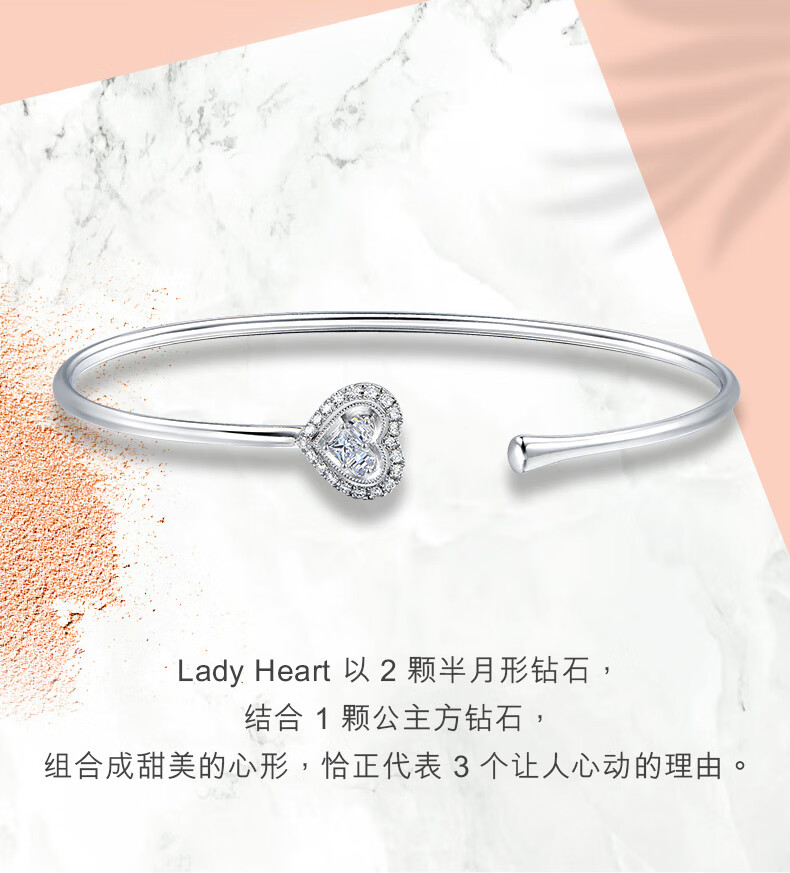 Chow Sang Sang Valentine's Day Gift 18K Gold Bracelet White Gold Bracelet Lady Heart Diamond Bracelet 89935K 06 laps