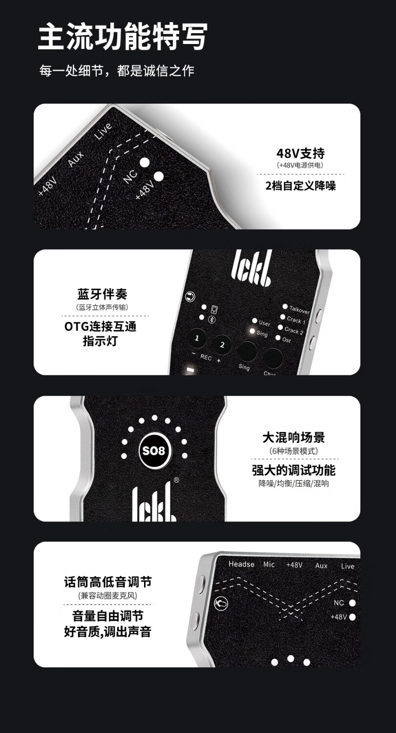 Ickb so8 sixth generation mobile phone sound card for live singing, dedicated for outdoor and indoor K-song anchors Douyin internet celebrity wireless microphone microphone set professional recording complete equipment Luosheng ES330 entry-level microphone set