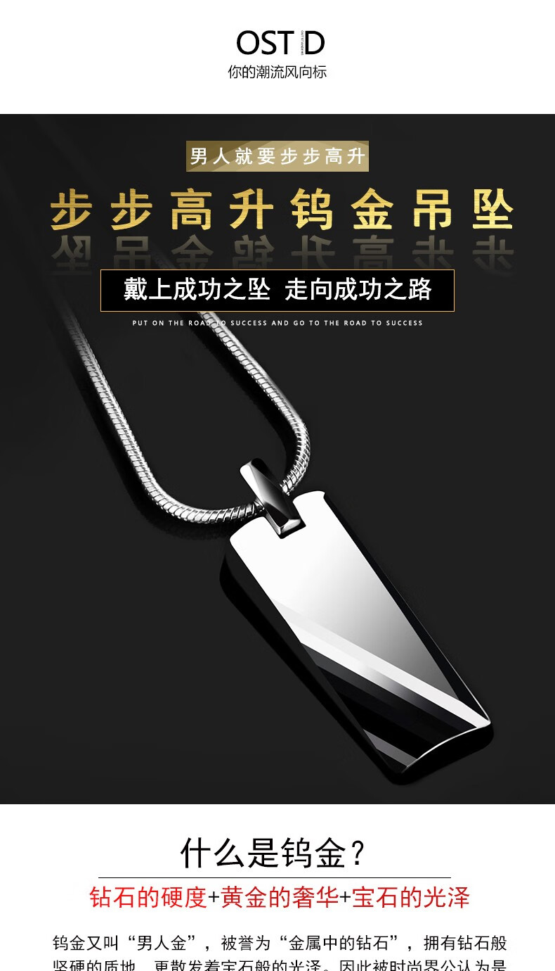 Ostantin tungsten gold pendant necklace, high-end, fashionable and versatile, trendy tungsten steel birthday and Valentine's Day gift for boyfriend and husband, black pendant with chain 50CM