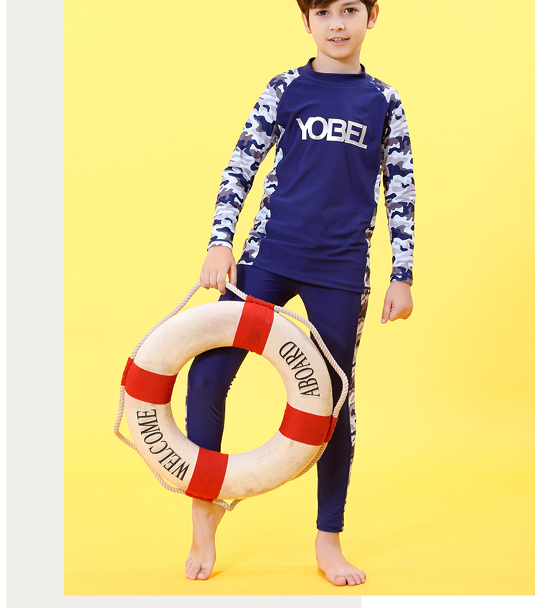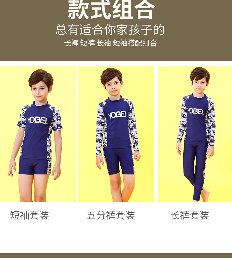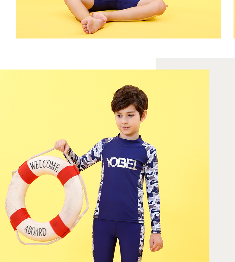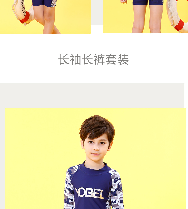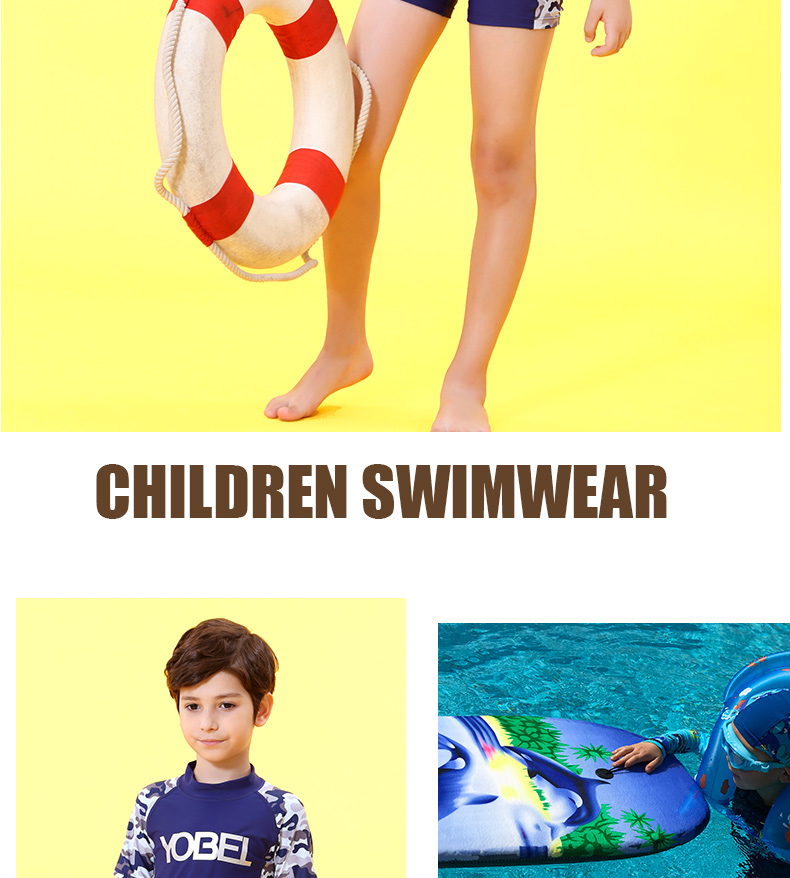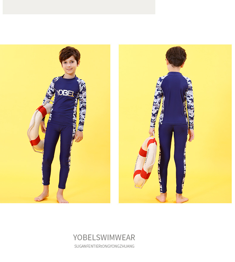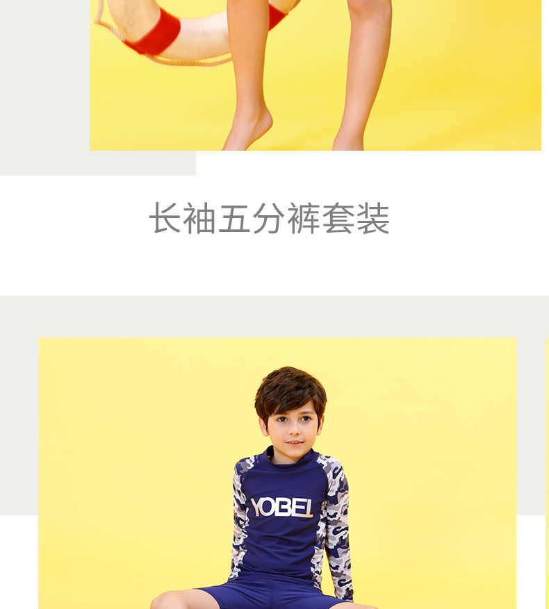 YobelYOBELl new children's split swimsuit, beach sunscreen, hot spring vacation, comfortable and breathable swimsuit set, long-sleeved five-quarter pants 14A