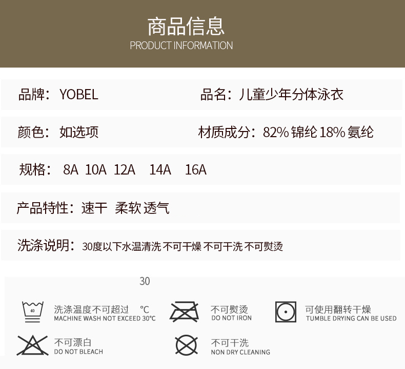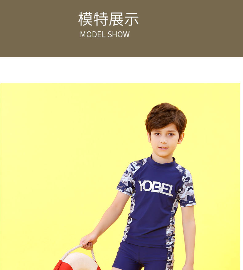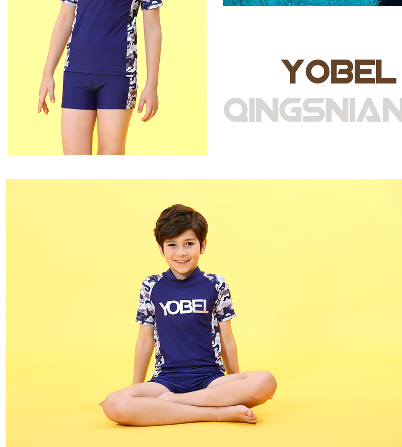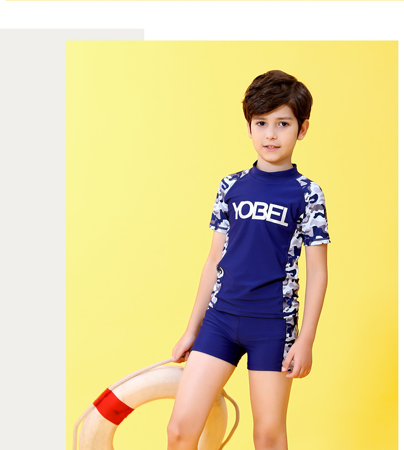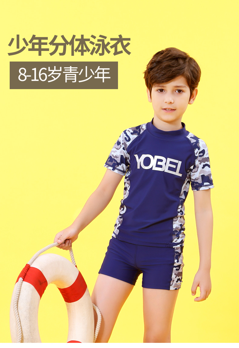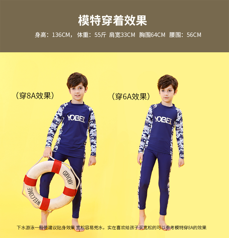 YobelYOBELl new children's split swimsuit, beach sunscreen, hot spring vacation, comfortable and breathable swimsuit set, long-sleeved five-quarter pants 14A