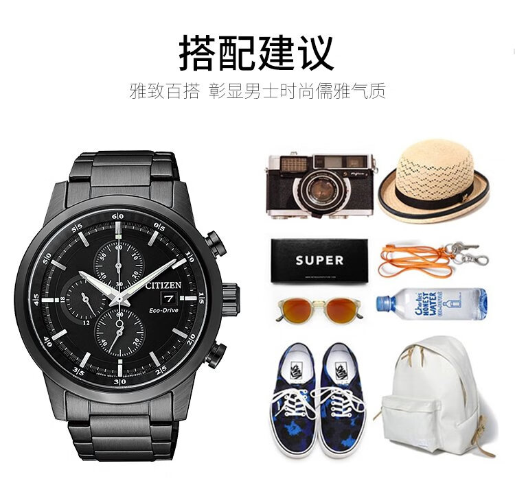 CITIZEN watch men's Japanese and Korean watch Black Samurai light kinetic energy black plate steel belt business Christmas gift CA0615-59E