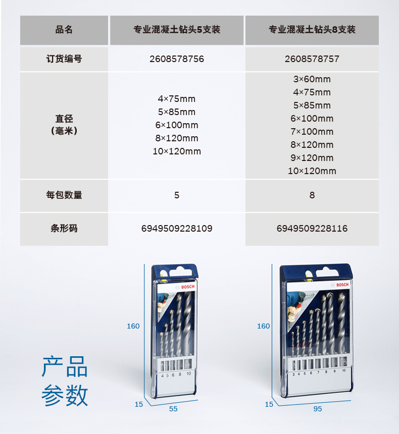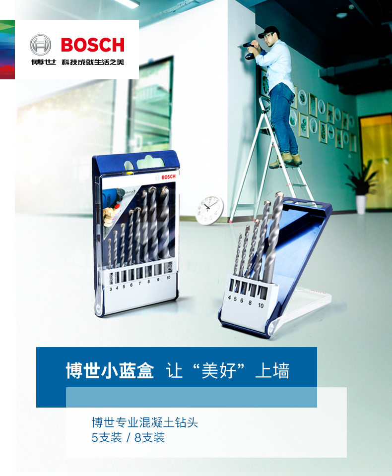 Bosch small blue box professional concrete/masonry drill bit brick wall drill bit set 5 pieces/8 pieces concrete impact drill bit 5 pieces