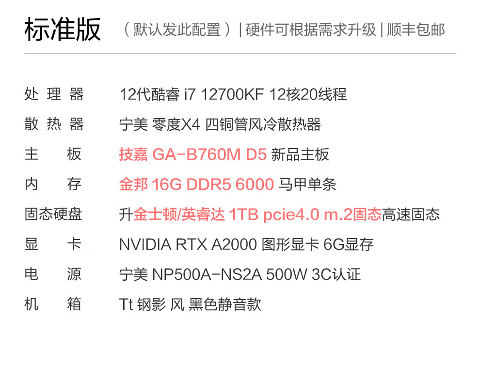Ningmei, Ningmei Zhuochuang i7 12700F/13700KF/A2000 video editing rendering creative designer desktop computer host DIY assembly