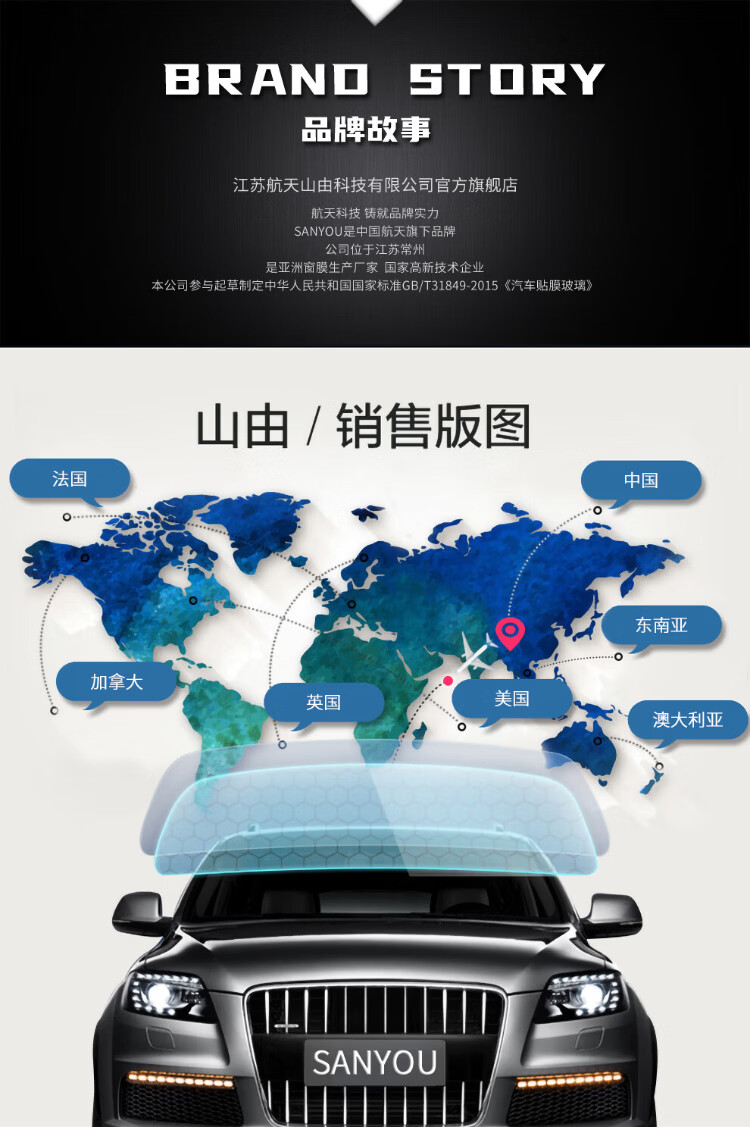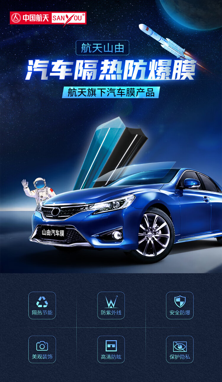 SANYOU China Aerospace Mountain consists of car film glass explosion-proof film insulation film nano ceramic solar film explosion-proof film black package only front gear