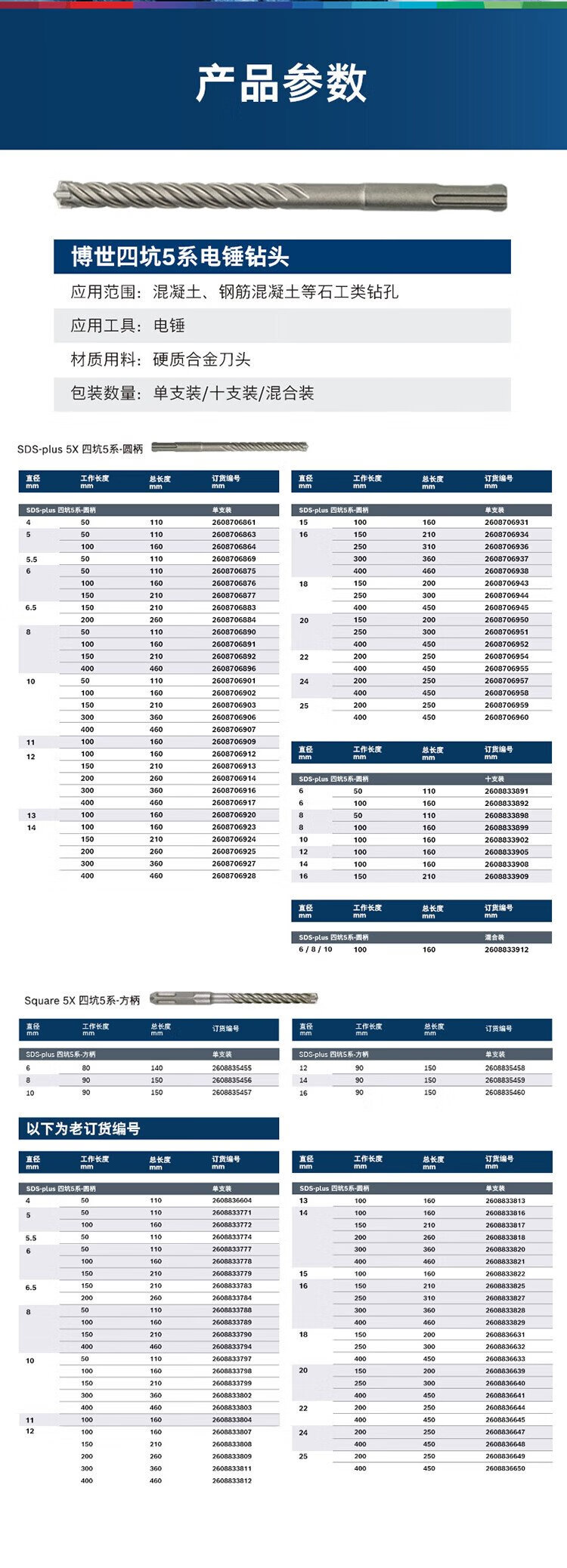 BOSCH electric hammer drill bit round shank four pits (two pits and two slots) 5 series concrete drill bit 6x100x160 (6mm)