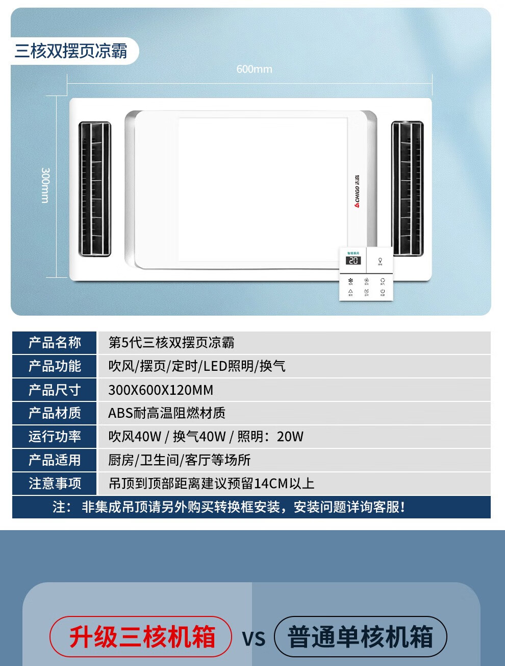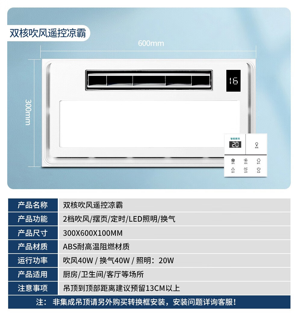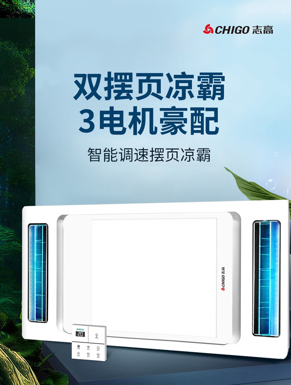 CHIGO Coolba Lighting Ventilation Ultra-thin Coolba Kitchen Integrated Ceiling Blower Fan Bathroom Embedded Cooling Fan Remote Control Remote Control Dual Motor Hair Dryer + Lighting Negative Ion Ventilation
