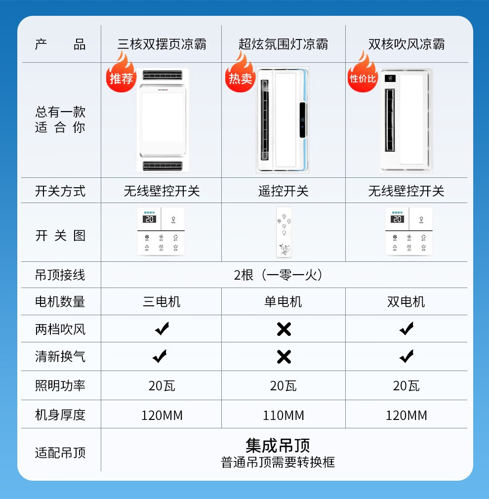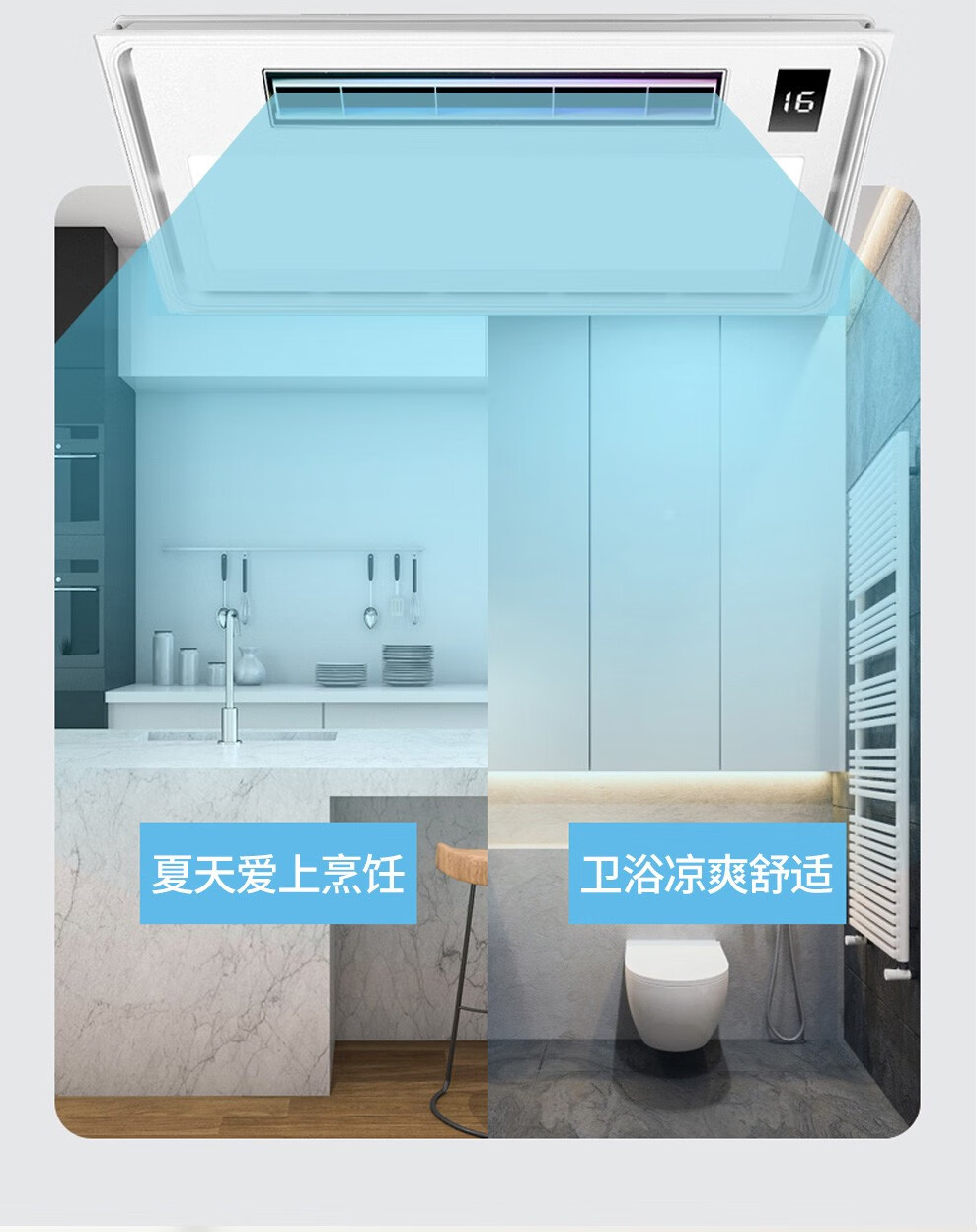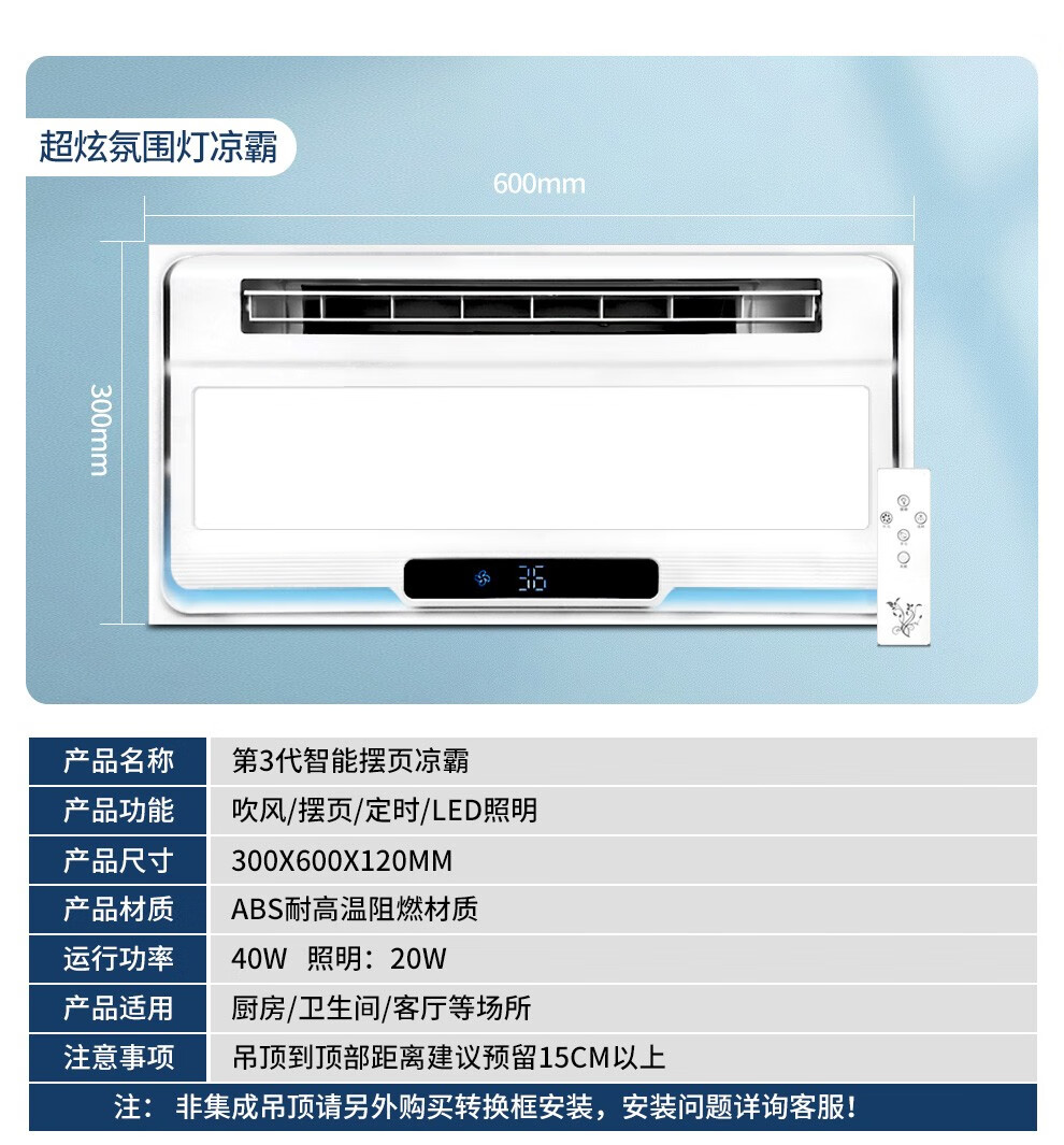 CHIGO Coolba Lighting Ventilation Ultra-thin Coolba Kitchen Integrated Ceiling Blower Fan Bathroom Embedded Cooling Fan Remote Control Remote Control Dual Motor Hair Dryer + Lighting Negative Ion Ventilation