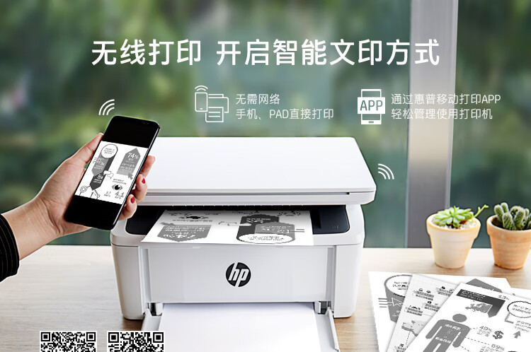 HP 30w A4 black and white laser all-in-one printer home small office copy and scan wireless wifi network student homework printing M30w print copy scan (fashionable and compact)