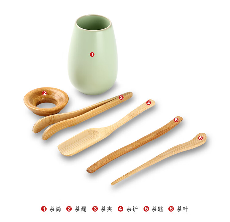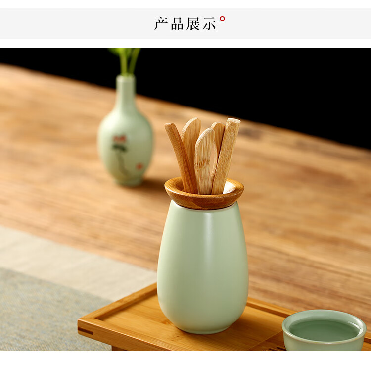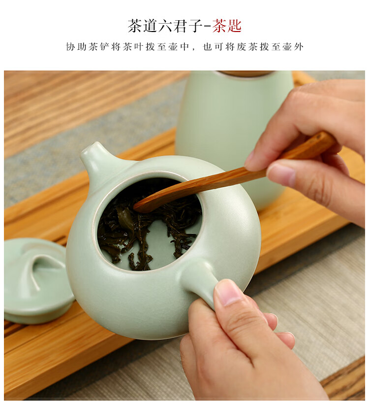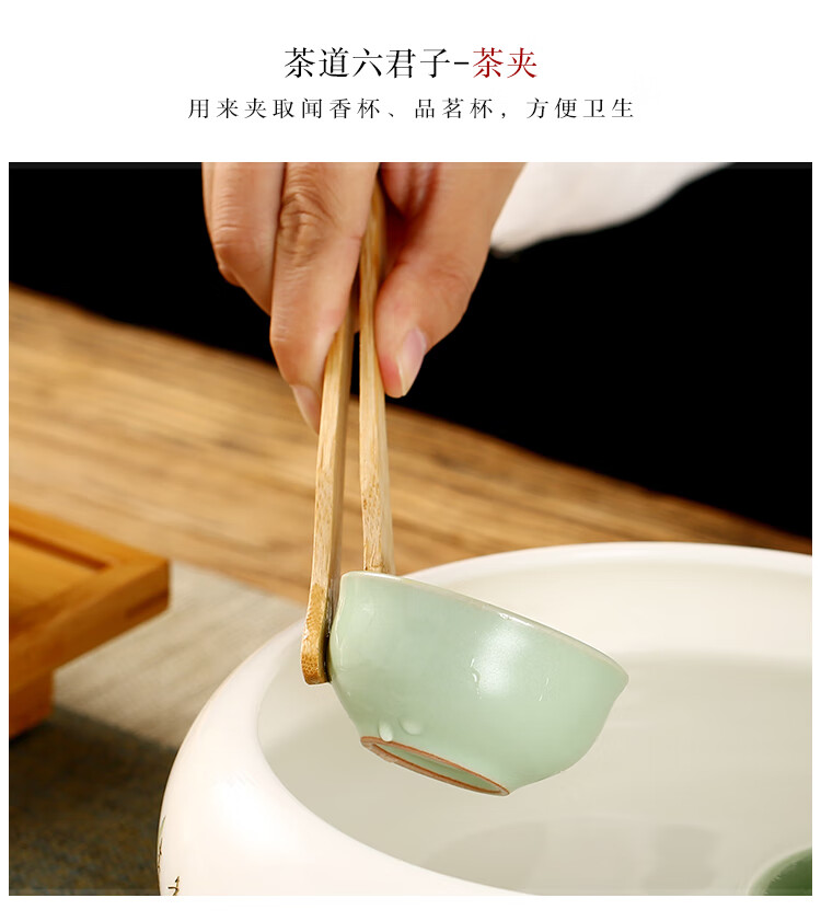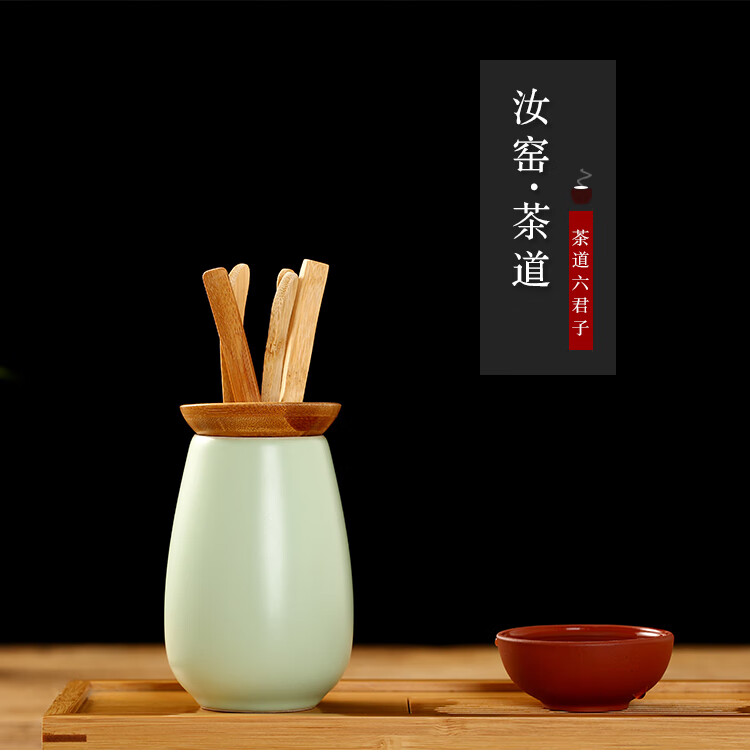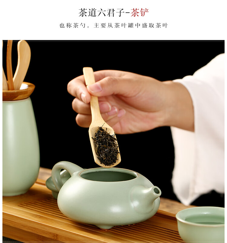 Gold inlaid jade tea set accessories tea ceremony six gentlemen ceramic solid wood tea needles tea shovel tea clips Ru kiln tea ceremony