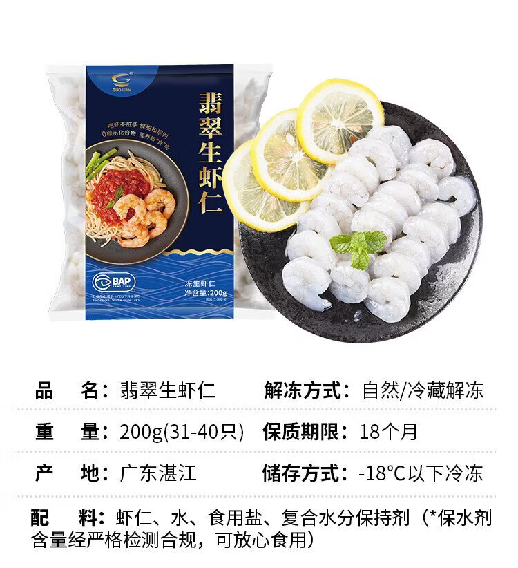 GUO LIAN Jade Raw Shrimp Net Weight 200g Individually Packaged 31-40 Pieces Jingdong Shrimp Quality Assurance