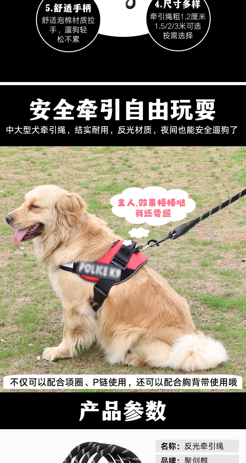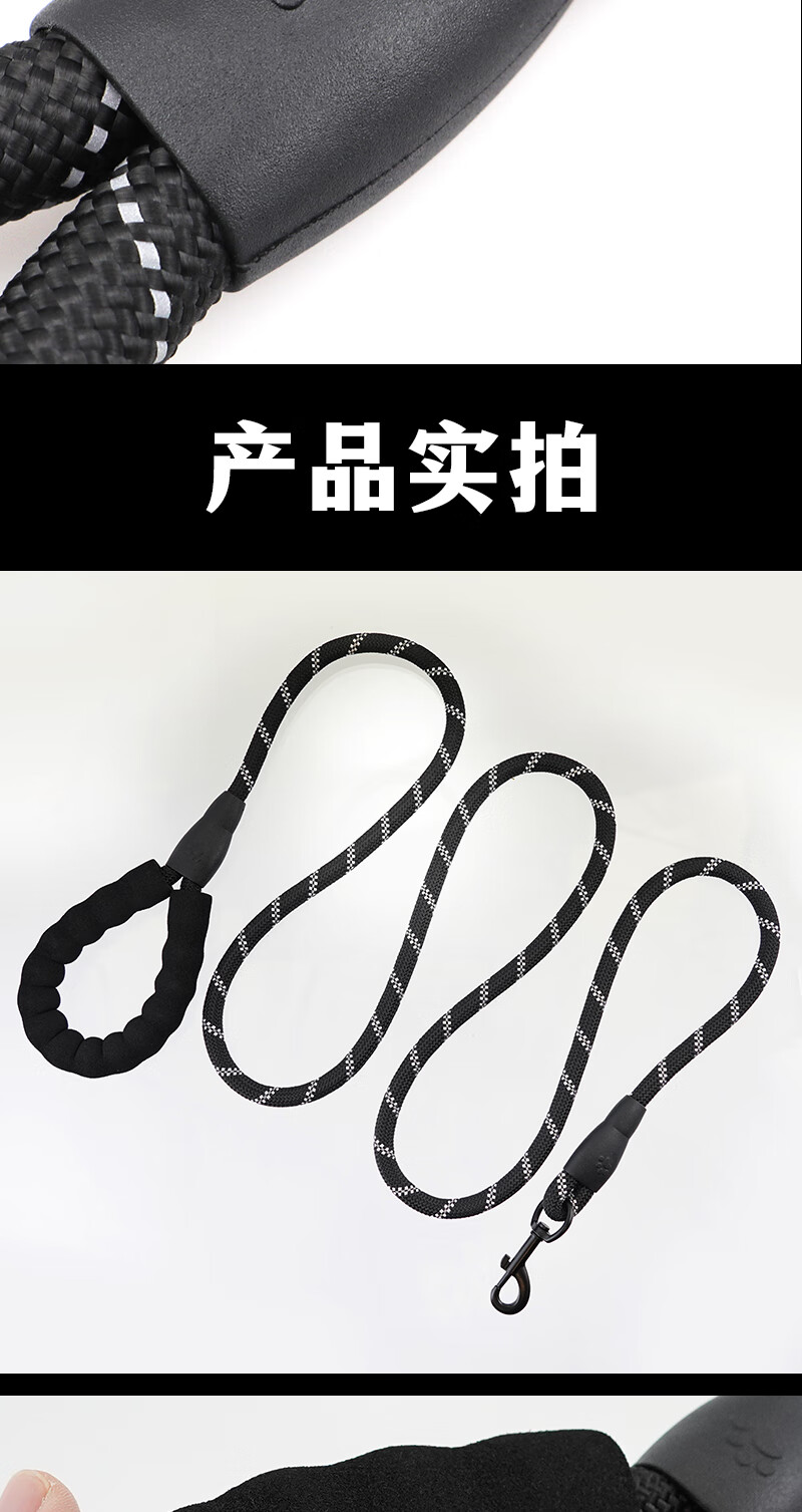 Juchuangqi Pet Leash Dog Rope Medium and Large Dog Explosion-proof Reflective Round Rope Dog Chain Non-Stretching Leash Black 2m Rope Thickness 1.2cm
