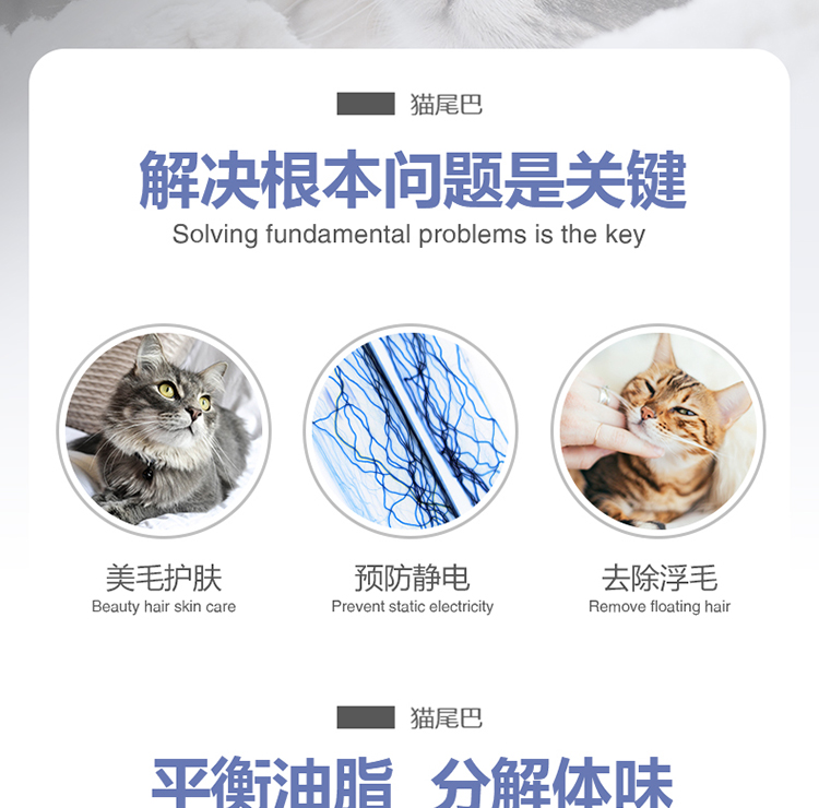 PETWISH cat tail shower gel is specially designed to remove cat tail grease, deodorize and sterilize into kitten bath liquid and cat bath shampoo.