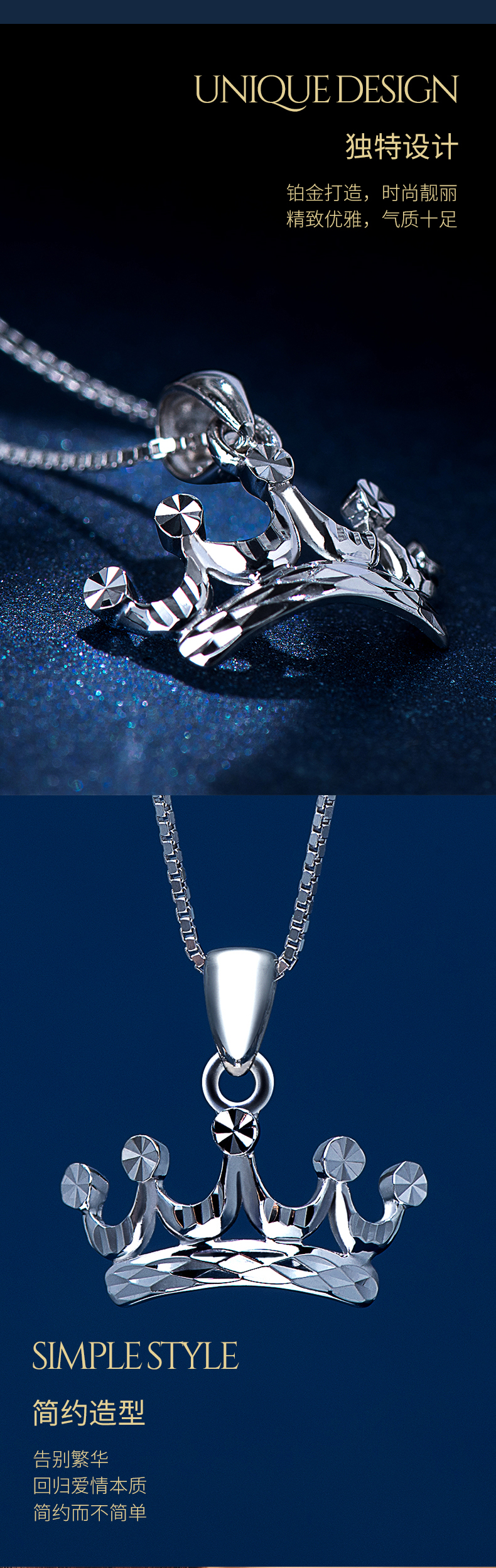 Pt.Charm platinum pendant for women PT950 platinum pendant crown necklace fashionable temperament dazzling white platinum personalized clavicle pendant spot 1.10-1.20 grams (with silver necklace)