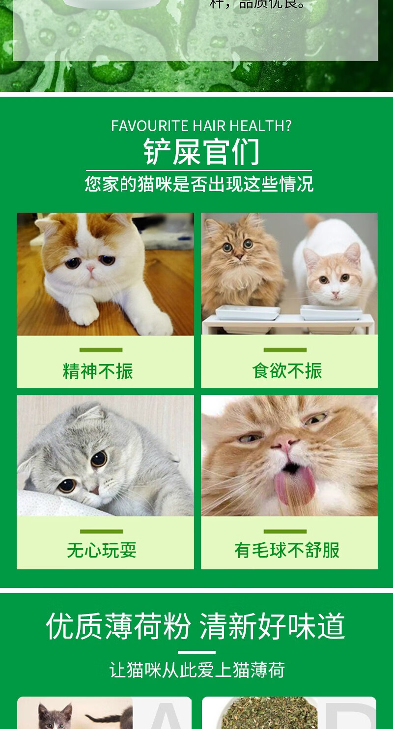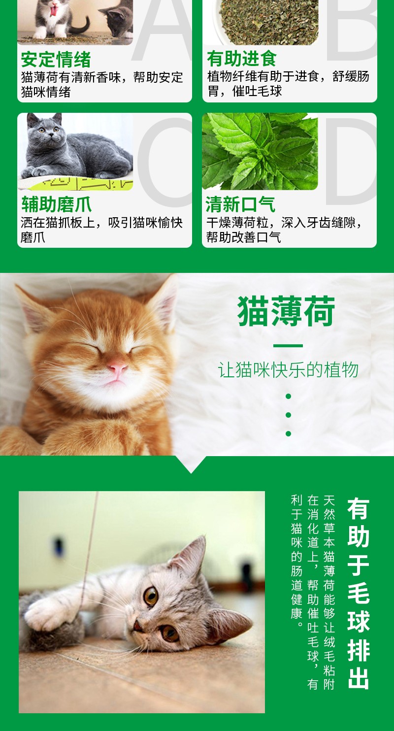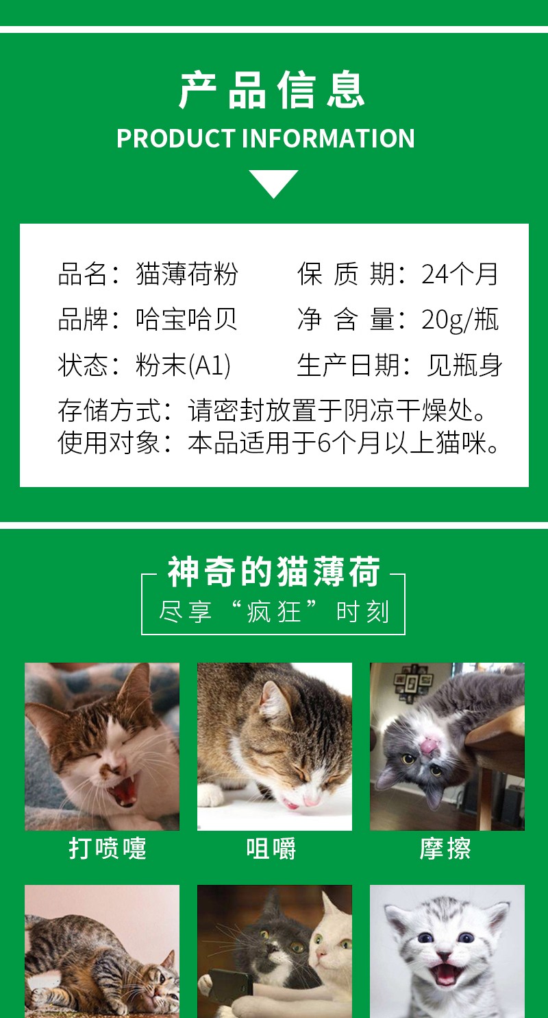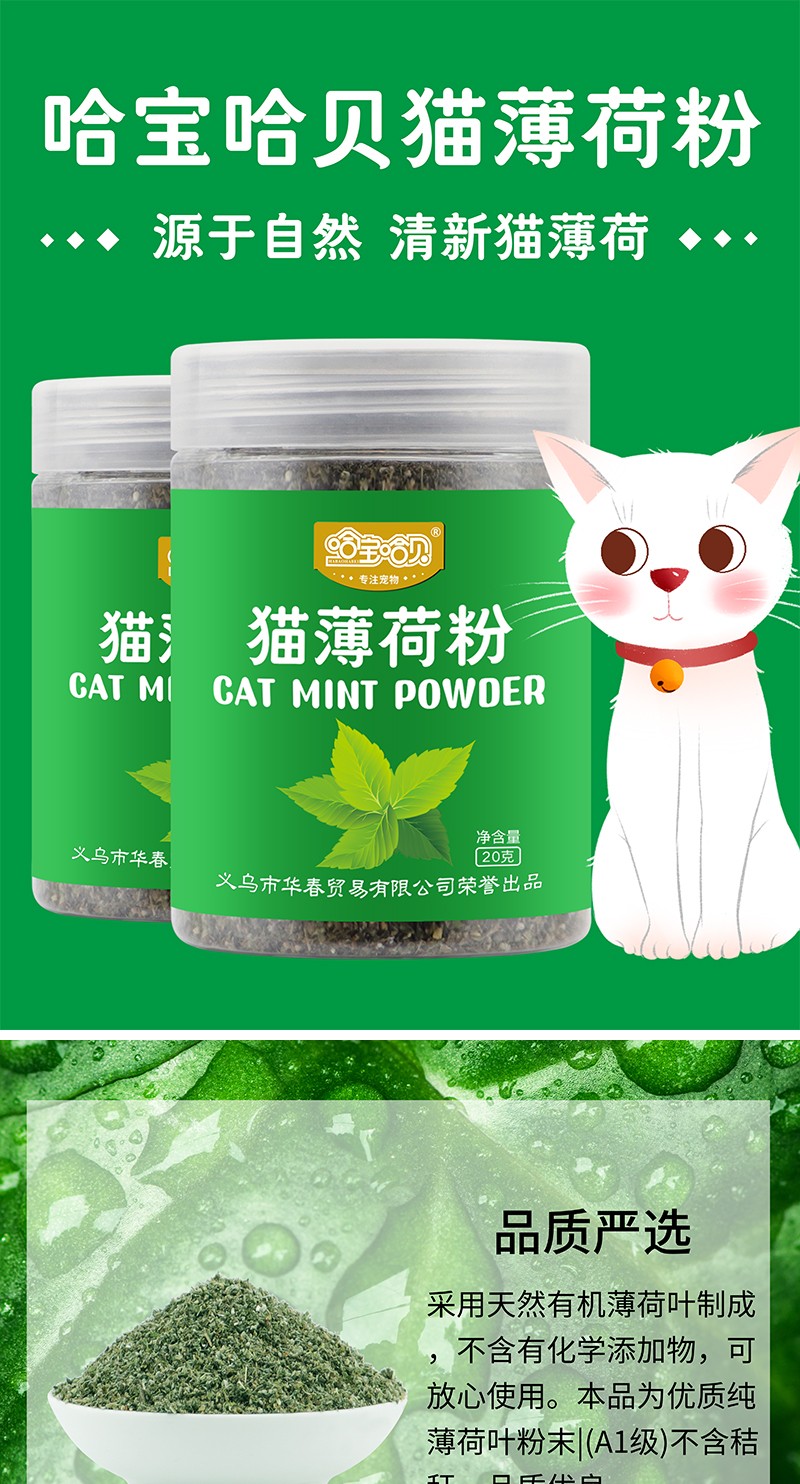 Habao Habai catnip powder, pure mint leaves, cat snacks, helps eliminate hair balls, cleans the mouth, decompresses cat grass, 1 bottle, about 20g/bottle