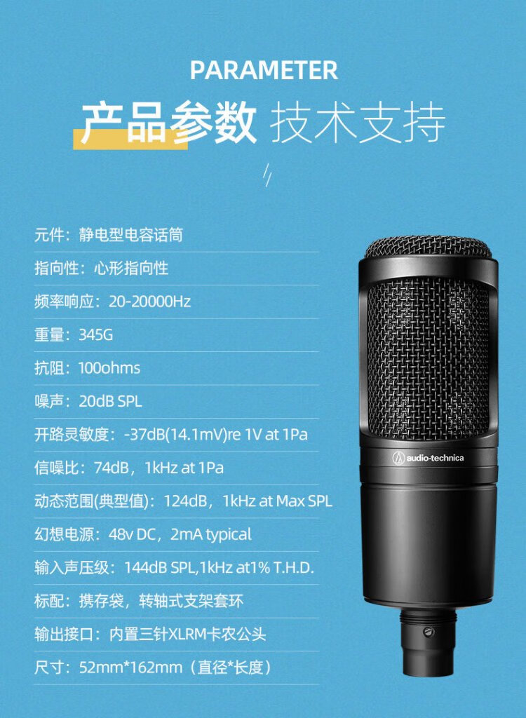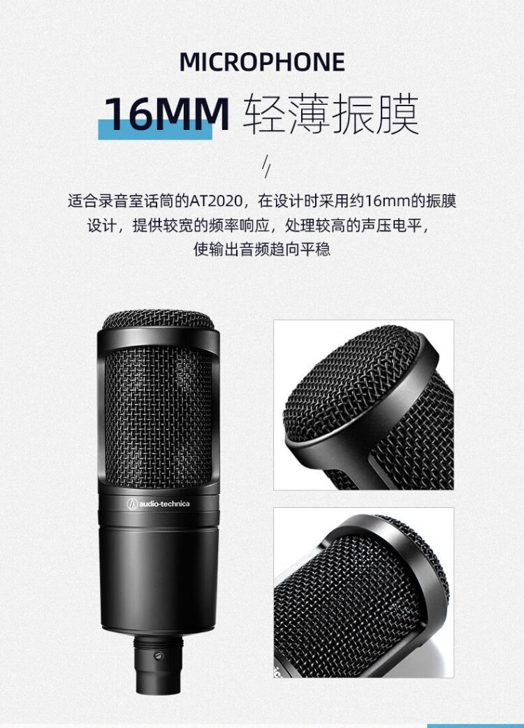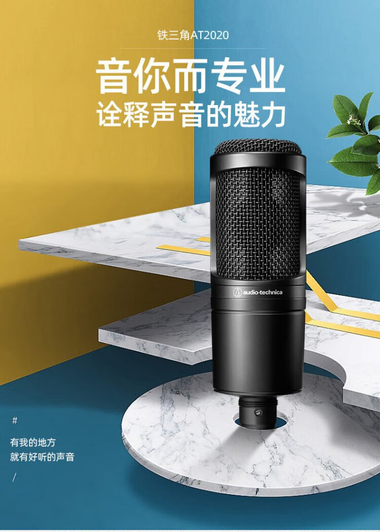 Audio-Technica AT2020 condenser microphone audiobook recording dubbing Himalayan professional equipment live broadcast anchor full set of recording sound card mobile phone computer singing microphone AT2020+Yamaha UR22C sound card set