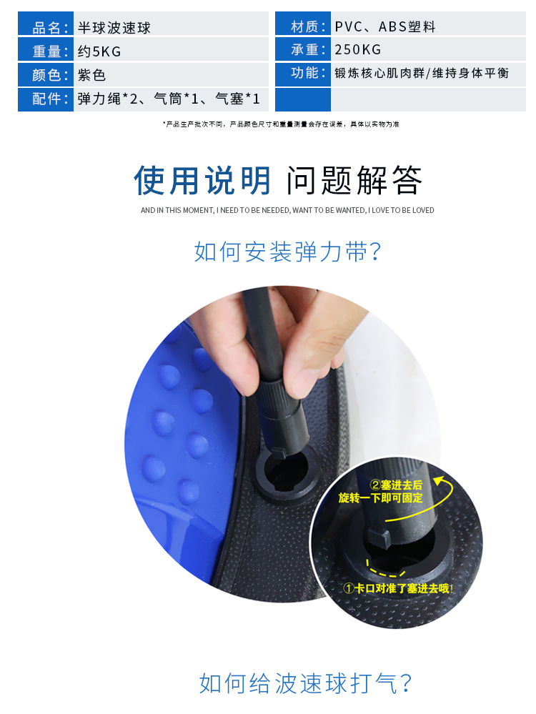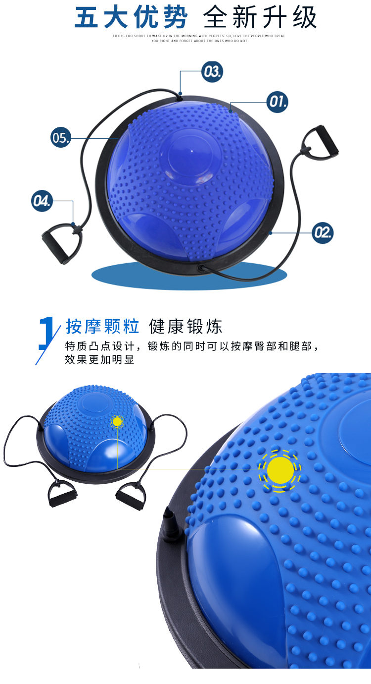 Hua Shi Meng Wave Speed Ball Semi-circular Balance Ball Thickened Explosion-proof Yoga Ball Fitness Rehabilitation Training Massage Balance Hemisphere Blue Massage Balance Ball
