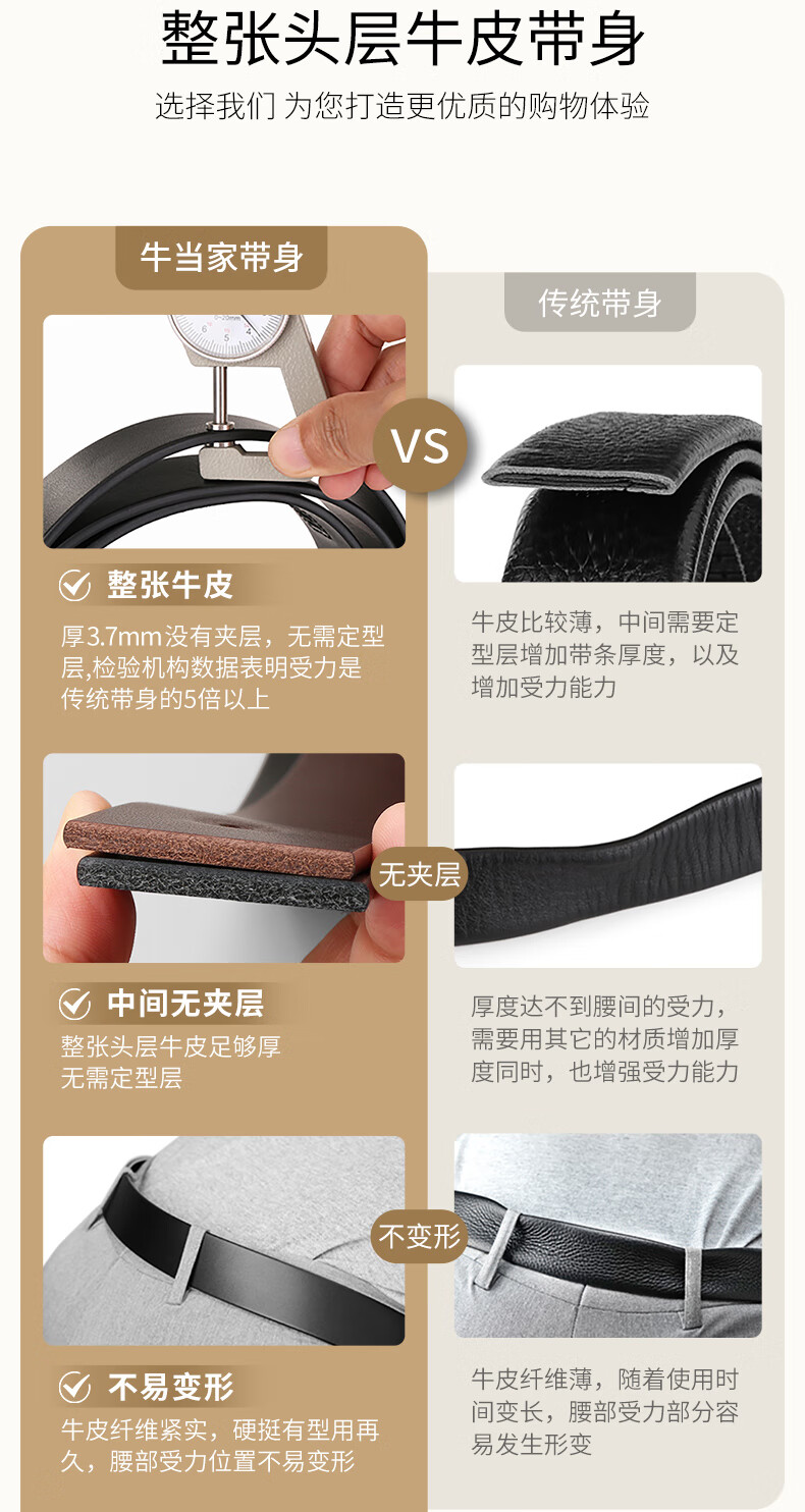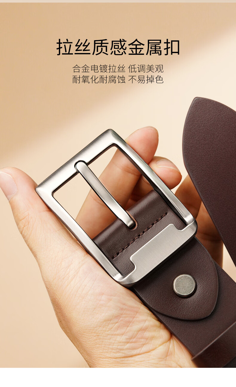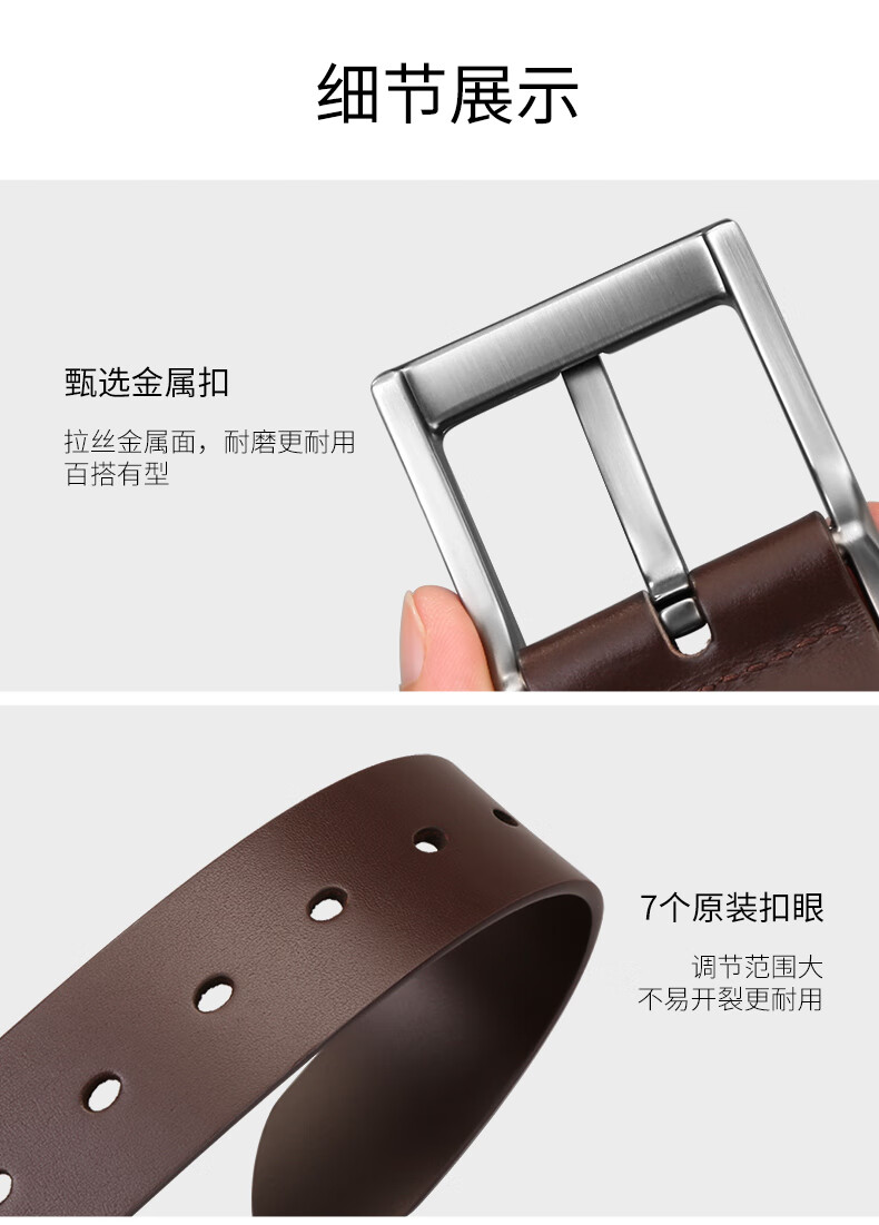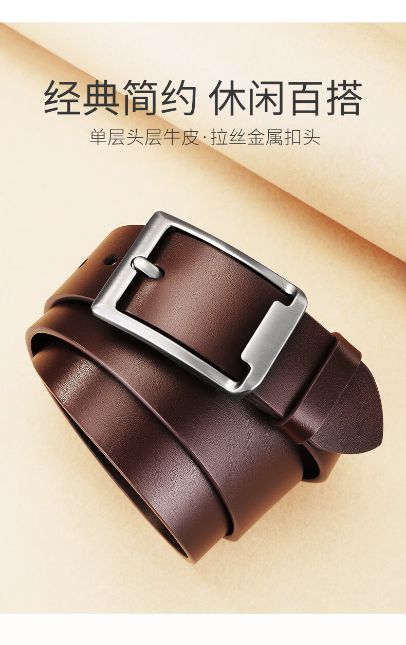 Niu Dangjia genuine leather men's cowhide belt pin buckle first layer cowhide 1101 dark brown gift 115-125cm