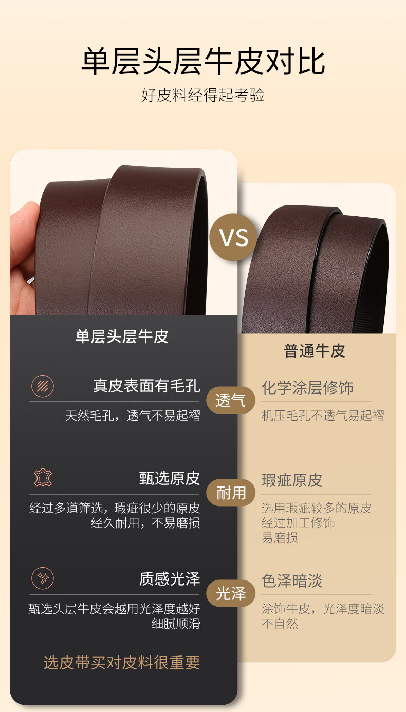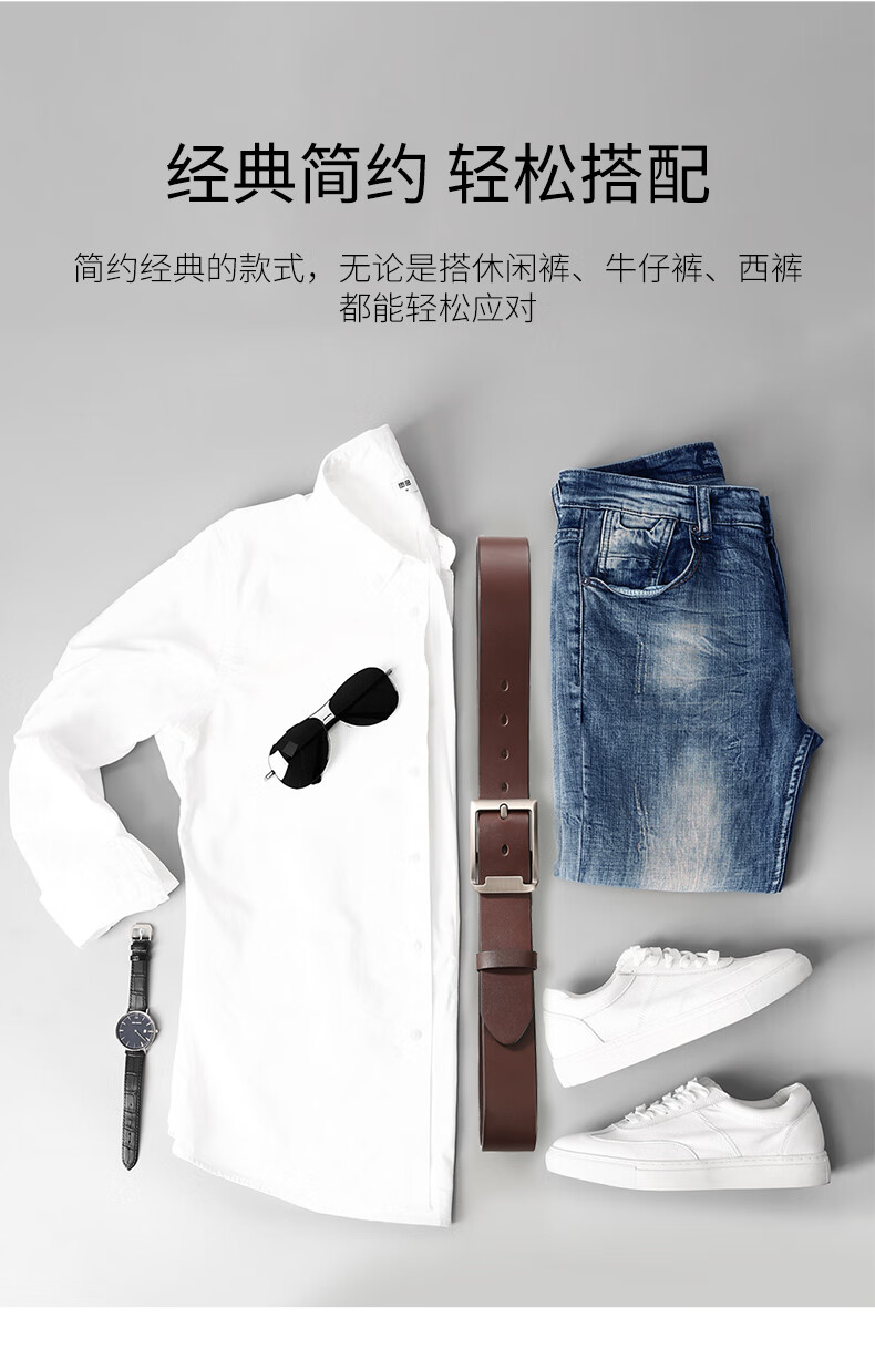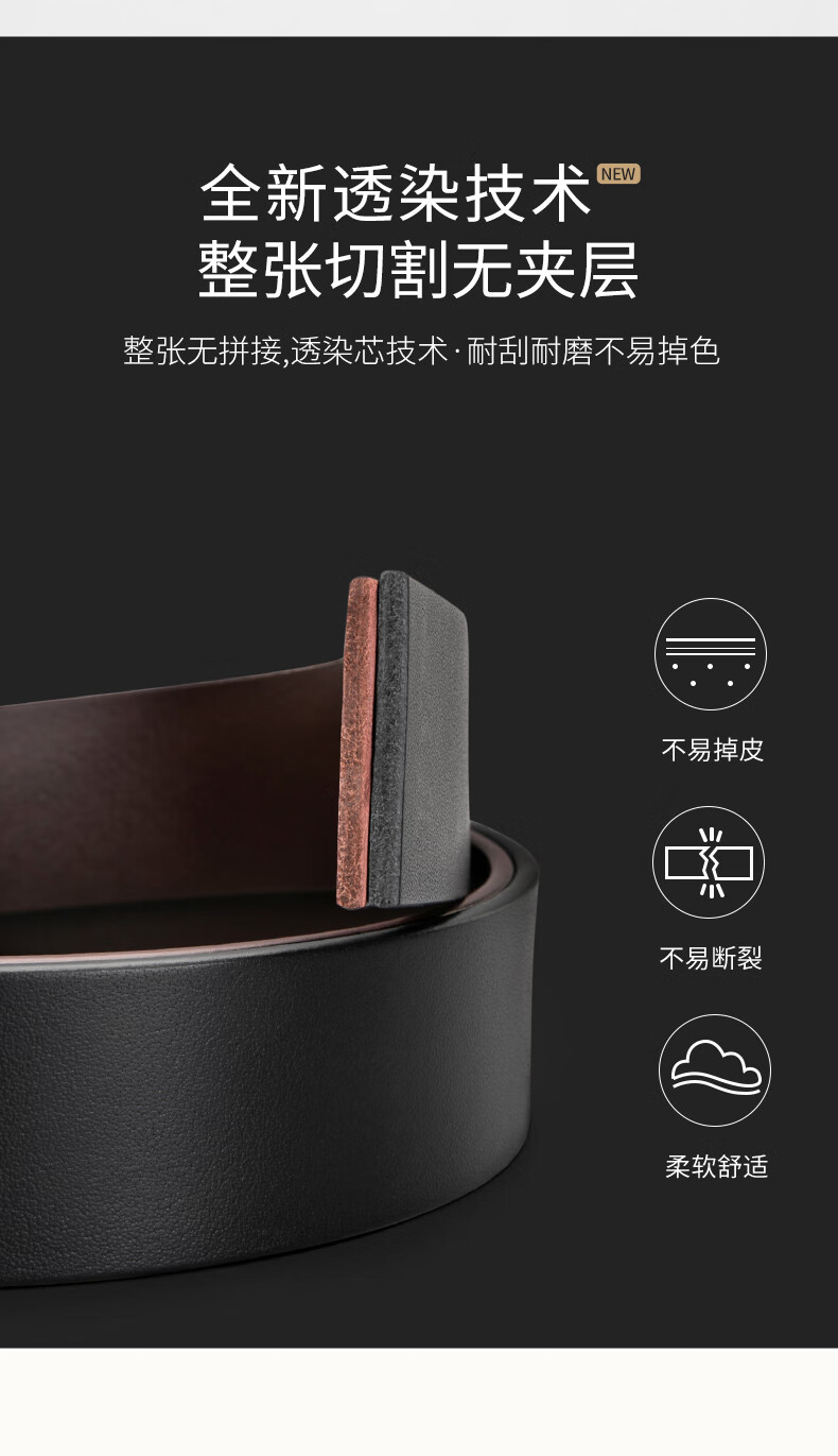 Niu Dangjia genuine leather men's cowhide belt pin buckle first layer cowhide 1101 dark brown gift 115-125cm