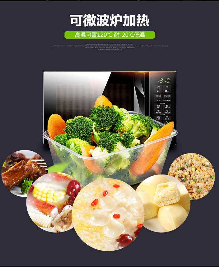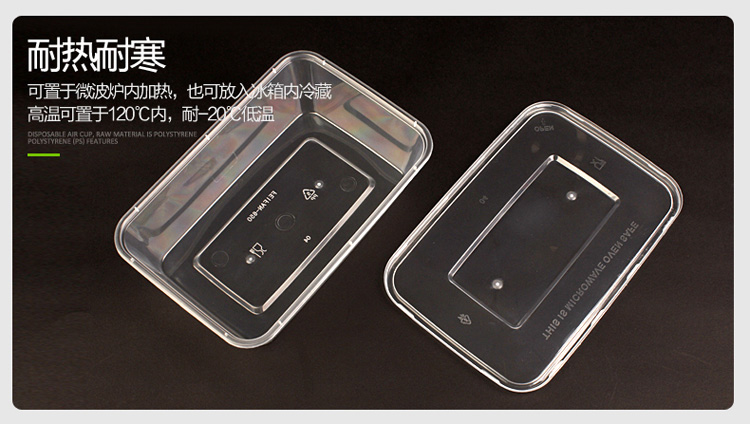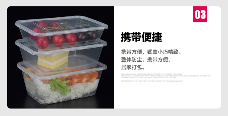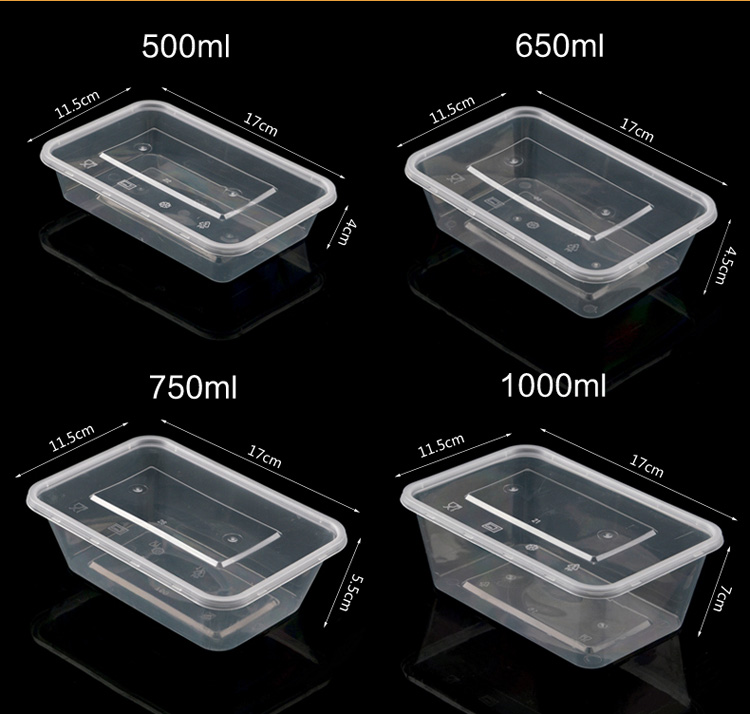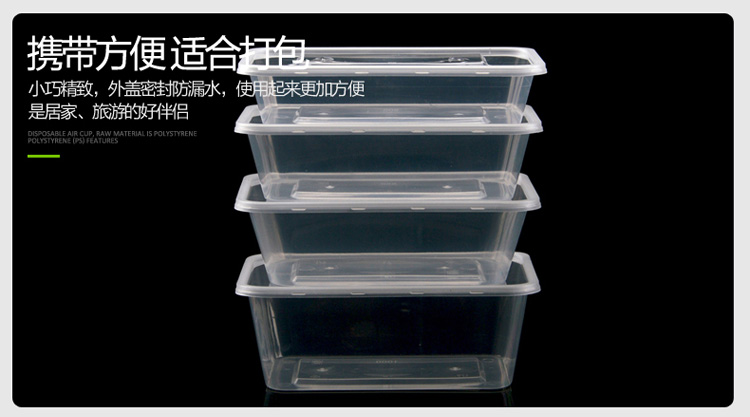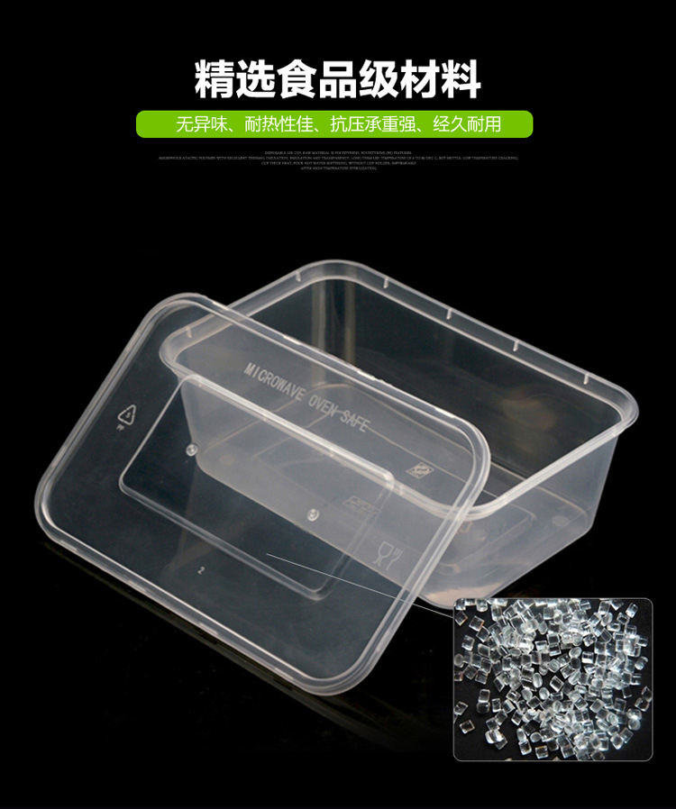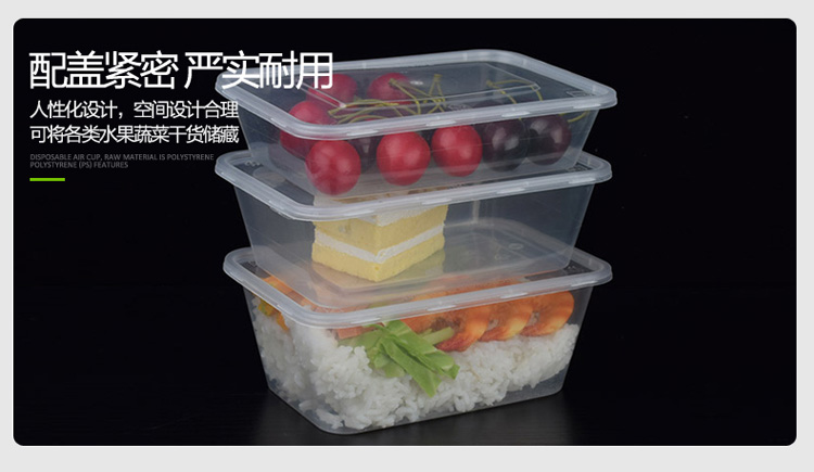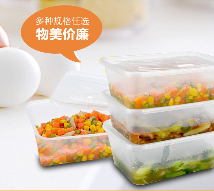 Shenfu disposable lunch box rectangular packaging box food-grade lunch box take-out fresh-keeping bowl thickened compartment fast food box with lid 1000ml square transparent 50 sets
