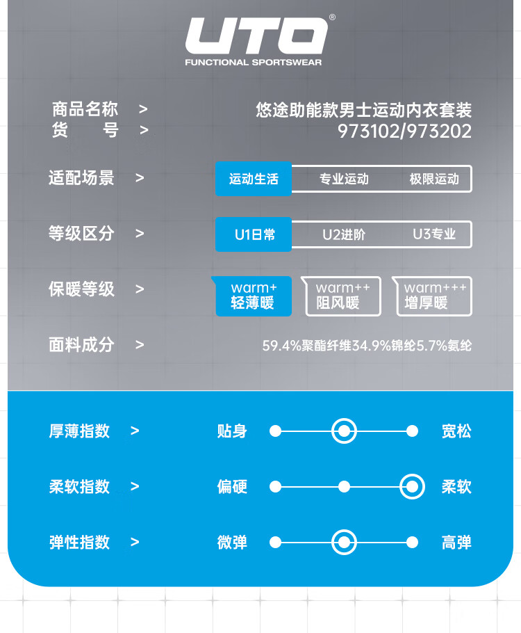 UTO compression quick-drying clothing for men and women ski clothing mountaineering outdoor sports thermal underwear set black gray (men) L