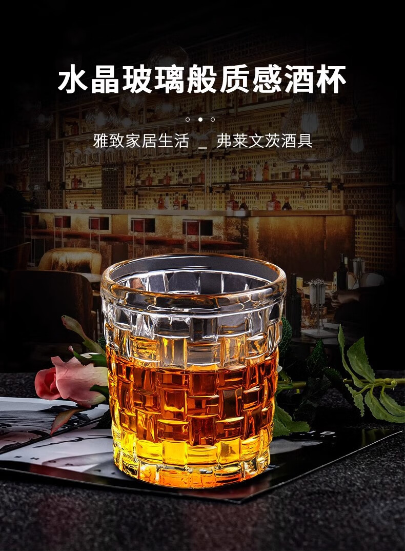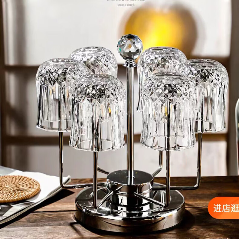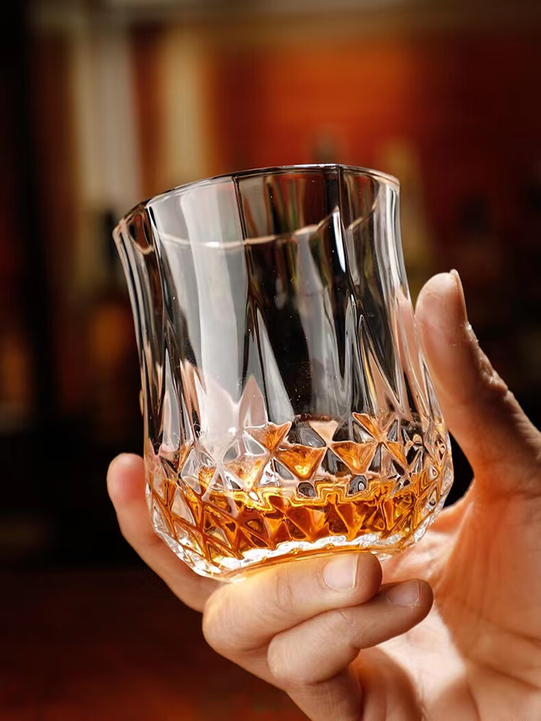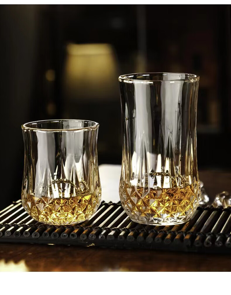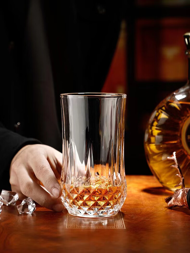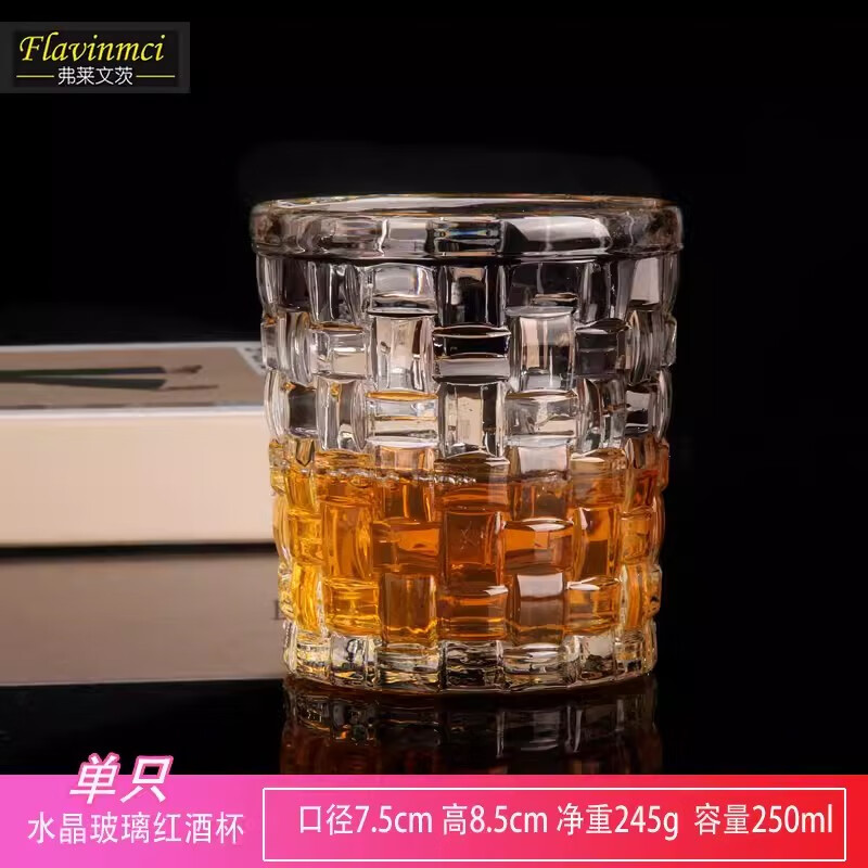 Flevinz glass European style wine glass whiskey glass personalized wineware water cup drink cup tea cup household glass cup 6 high diamond cups (transparent) + cup brush 300ml