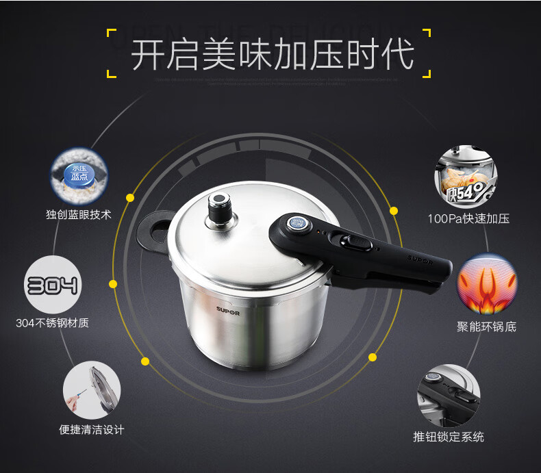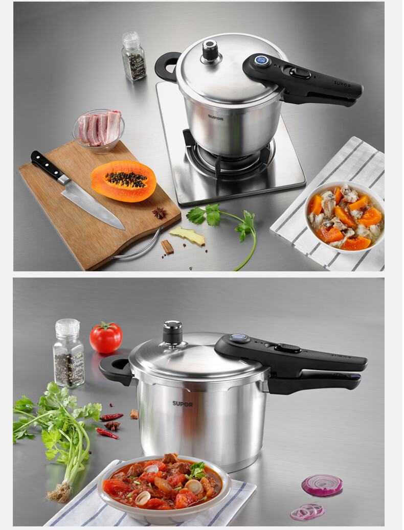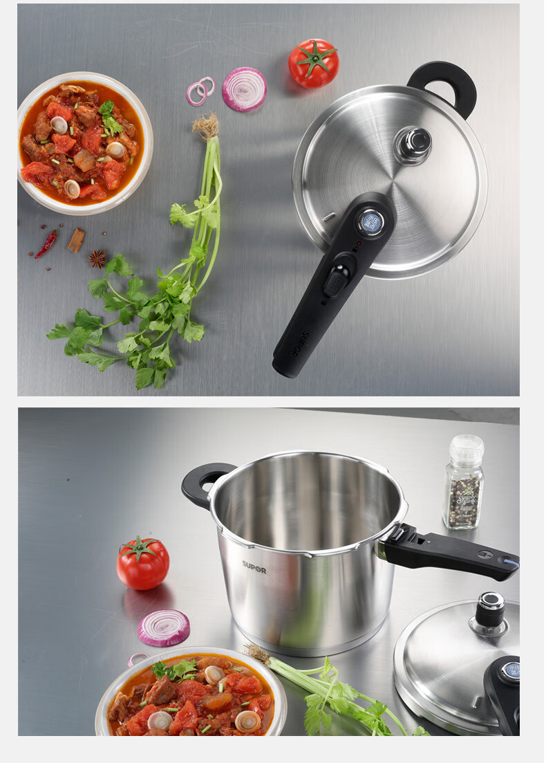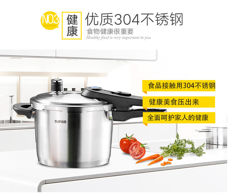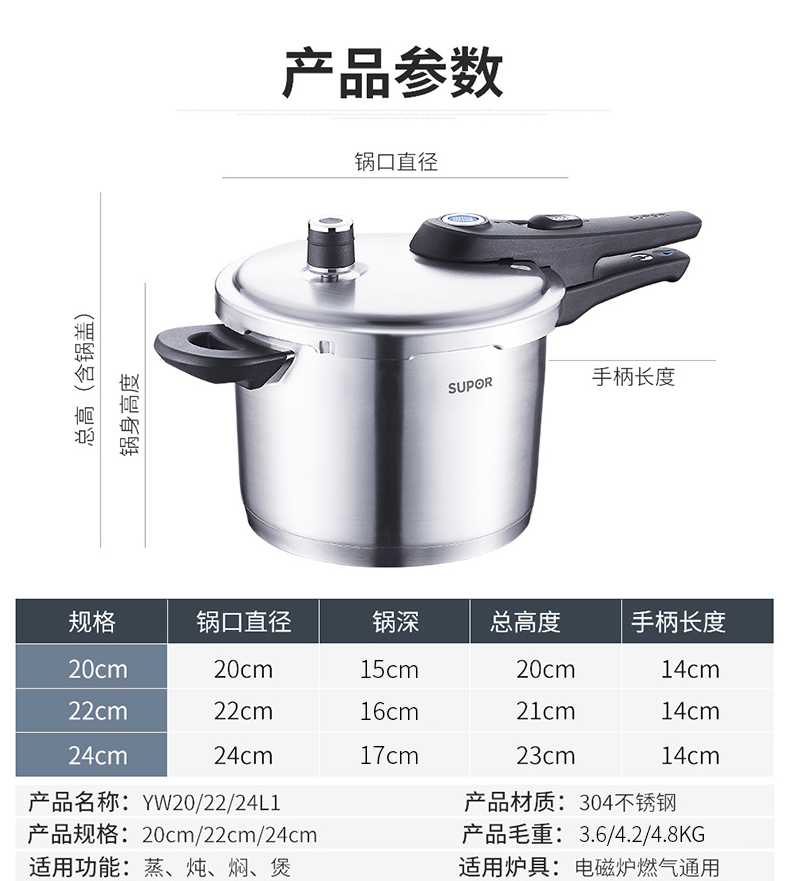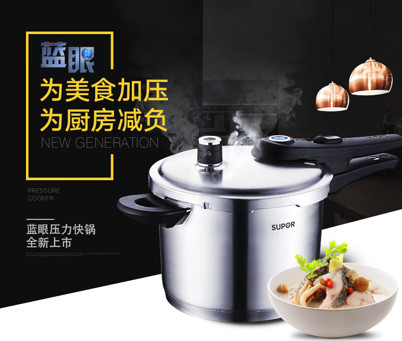SUPOR pressure cooker gas pressure cooker 304 stainless steel pressure cooker induction cooker gas universal large household blue eye model suitable for 3-5 people 22cm6L 22cm