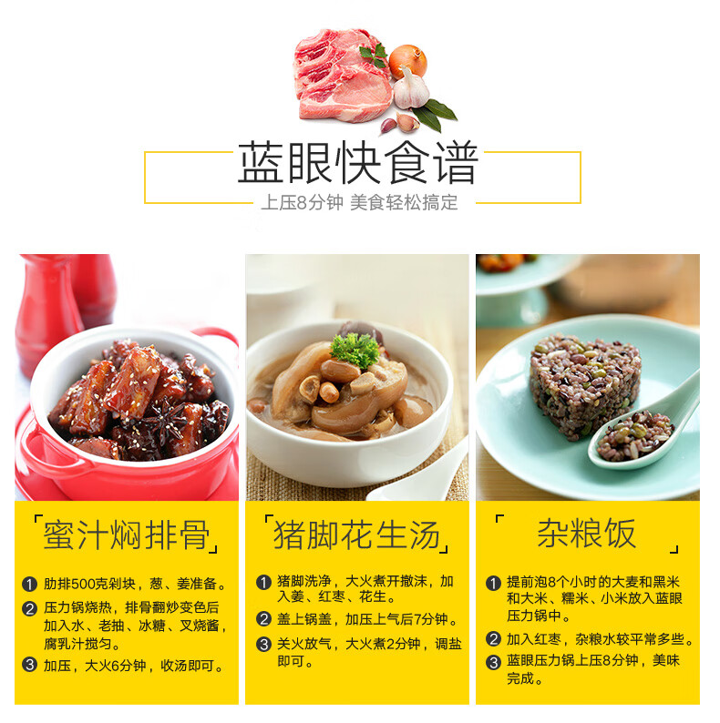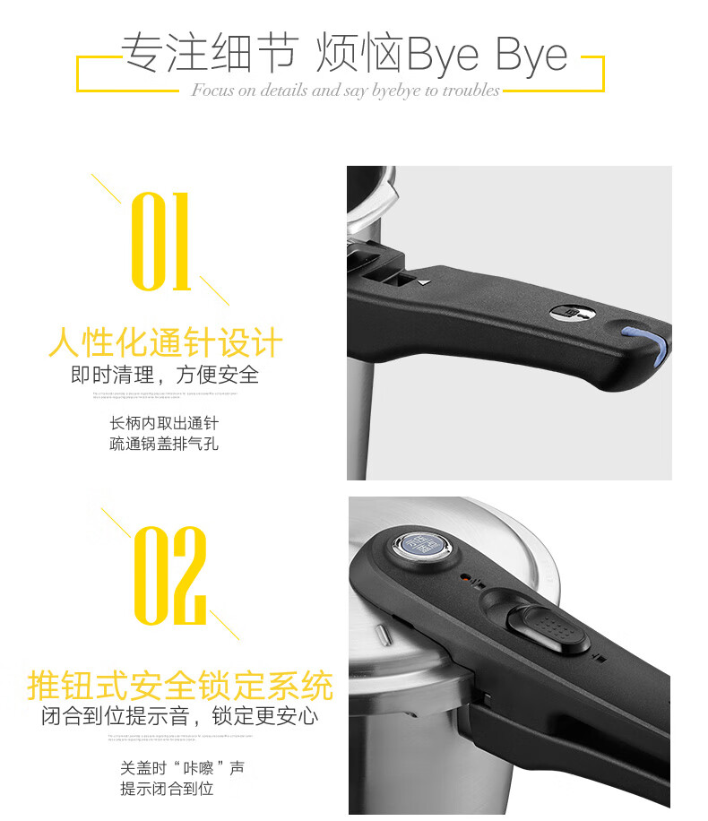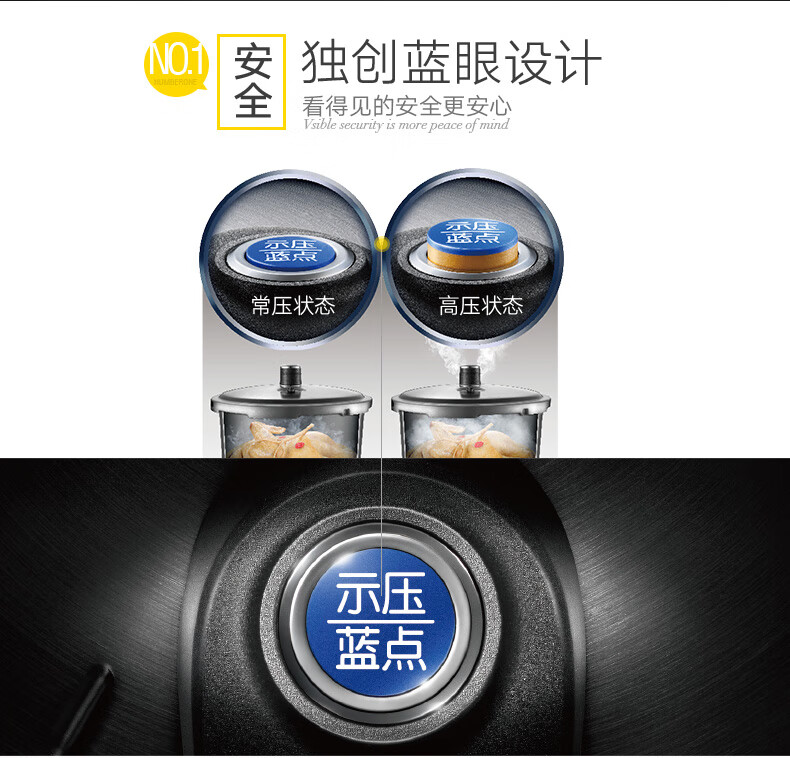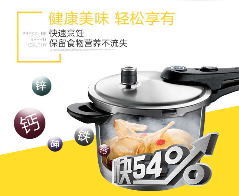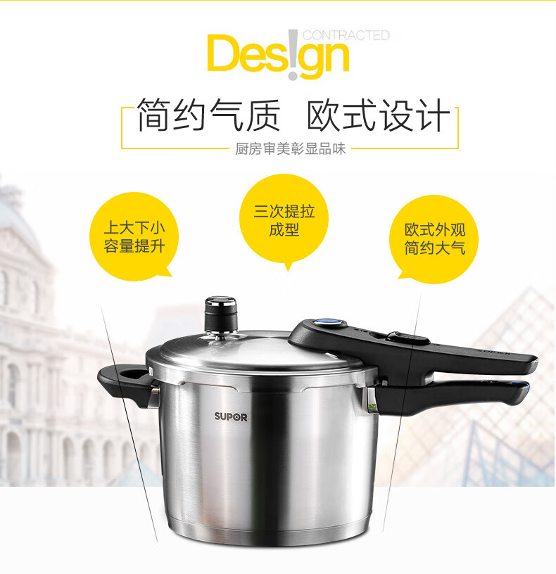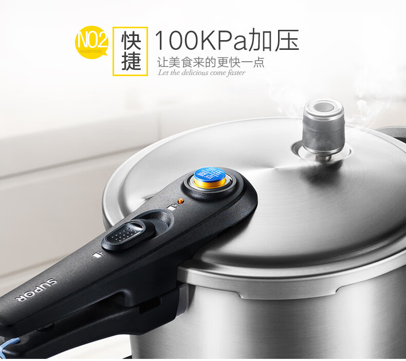 SUPOR pressure cooker gas pressure cooker 304 stainless steel pressure cooker induction cooker gas universal large household blue eye model suitable for 3-5 people 22cm6L 22cm